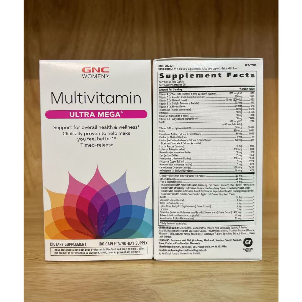 GNC Women's Multivitamin Ultra Mega(EXP 2027) - 180 Caplets (90 Servings)