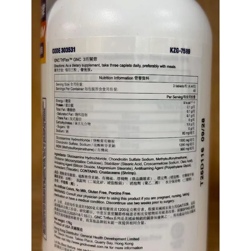 GNC TriFlex Joint Support Original (Glucosamine+Chondroitin+MSM)(EXP 2028) 120 Caplets (Hong Kong Version )