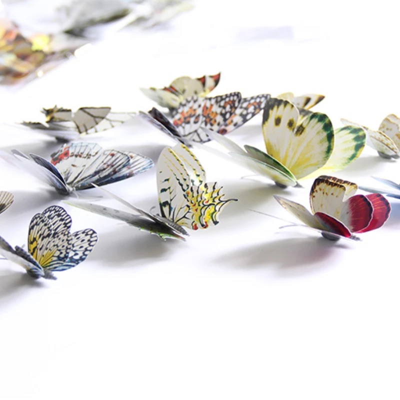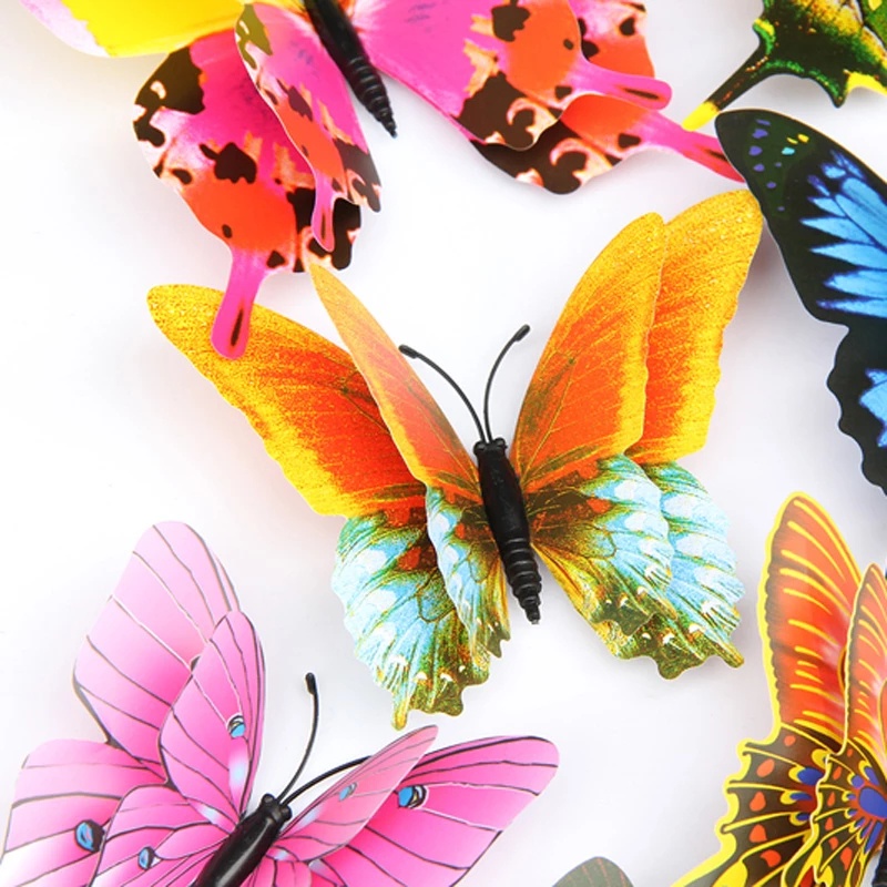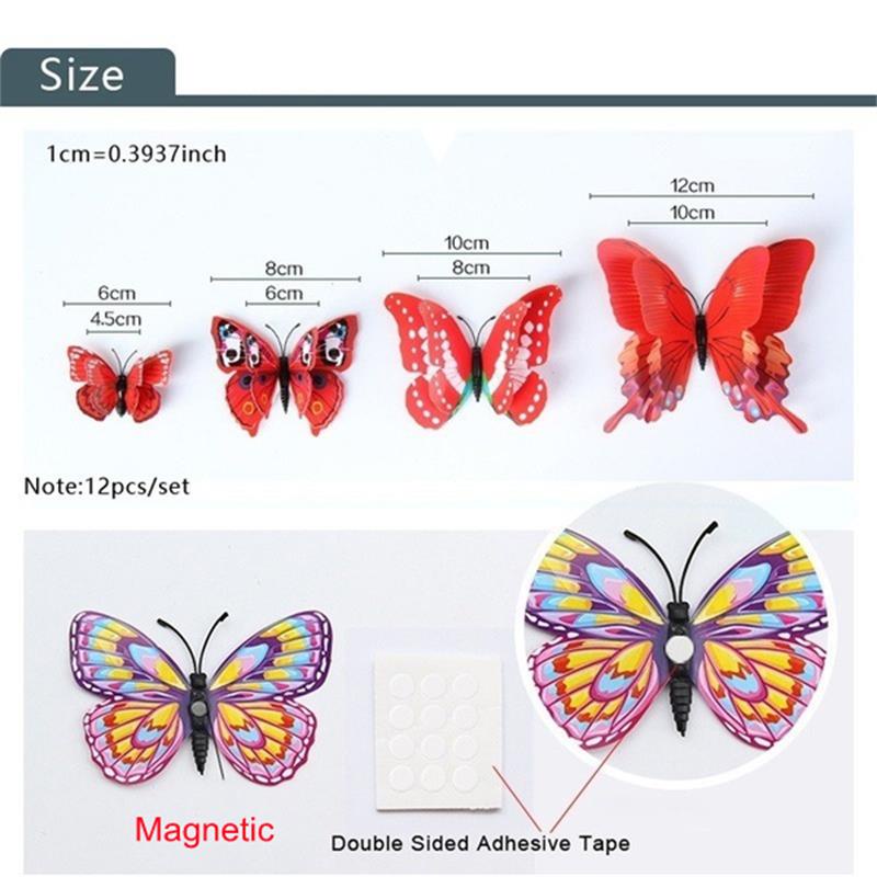 12Pc/Set Colorful Double Layer 3D Magnetic Butterfly Wall Sticker / Butterflies Refrigerator Magnet Stickers