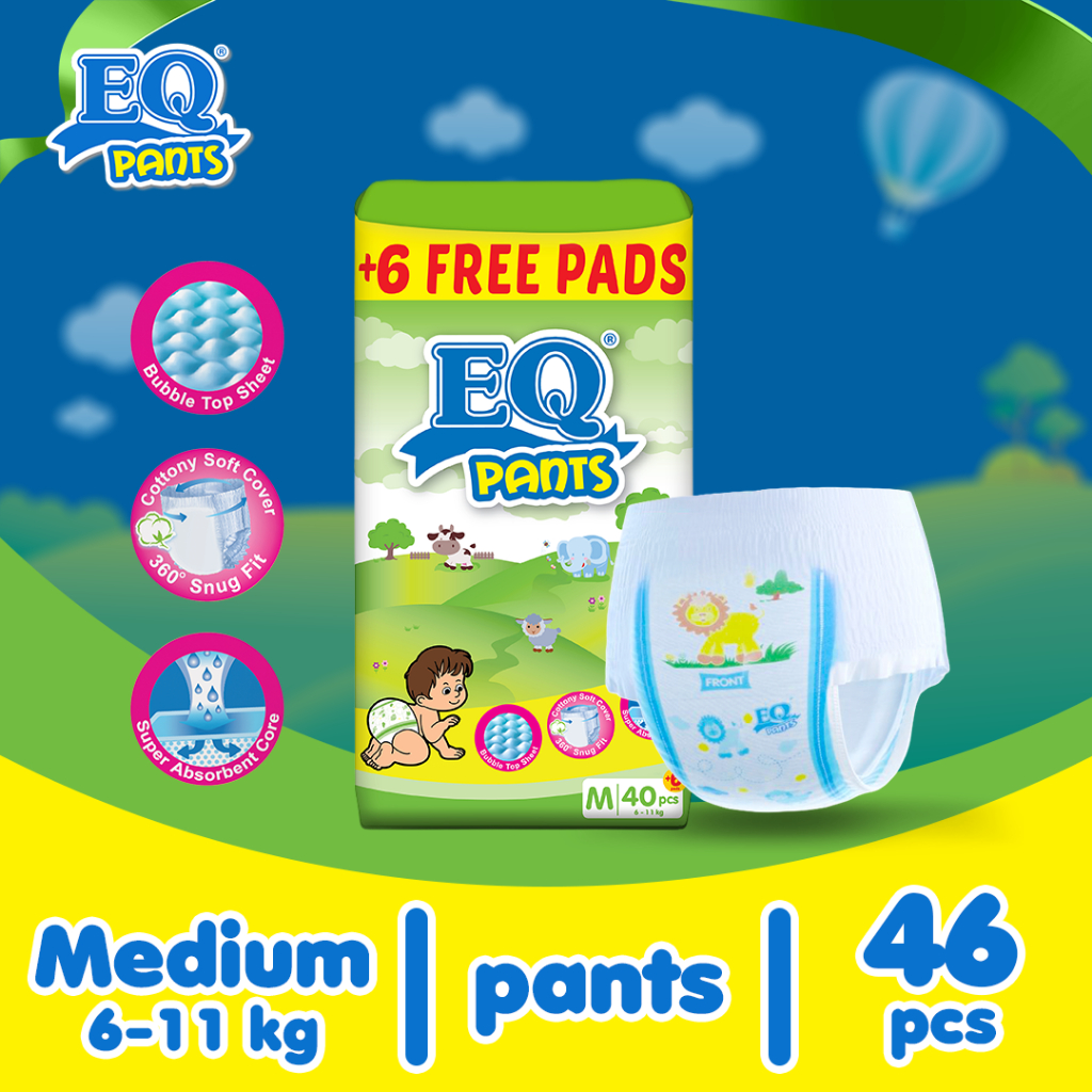 EQ Pants Jumbo Pack Medium 40's + 6 Free Pads - Pants Baby Diaper
