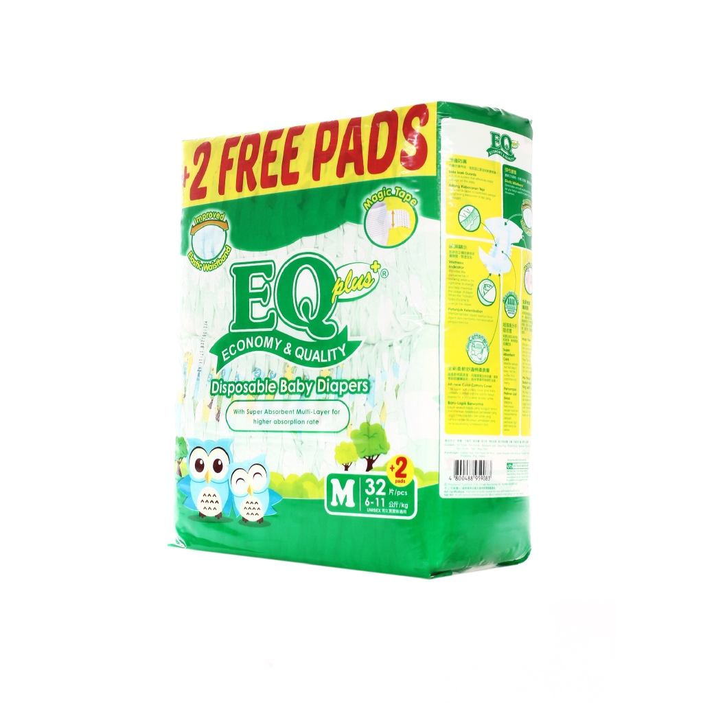 EQ Plus Big Pack Medium 32's - Tape Baby Diapers