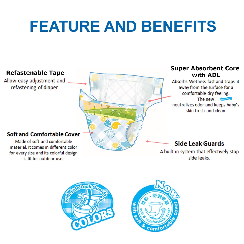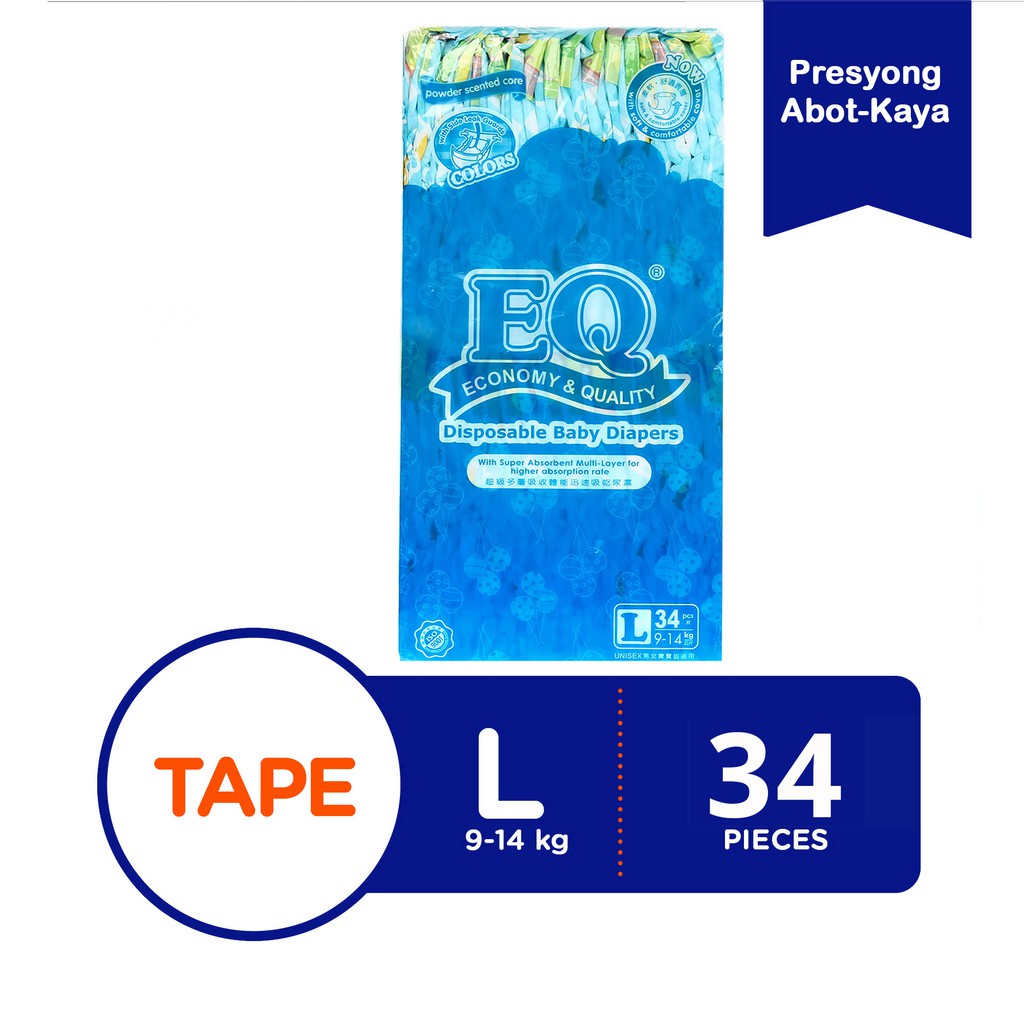 EQ Colors Big Pack Large 34's - Tape Baby Diapers