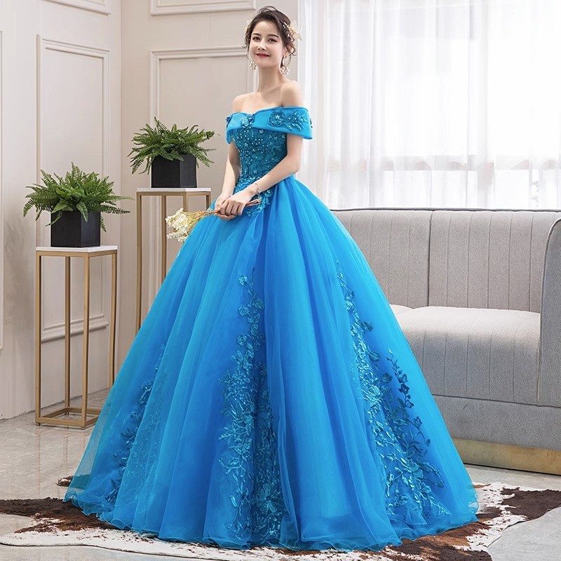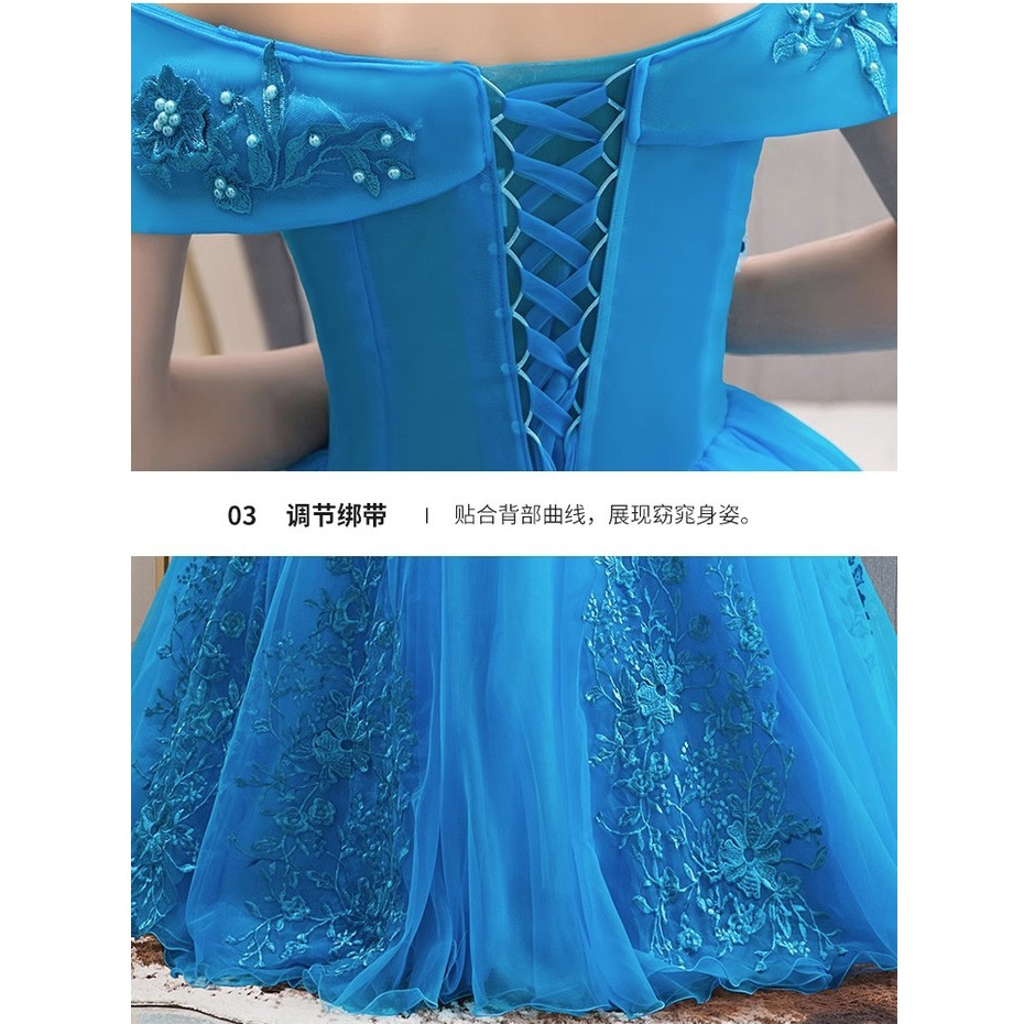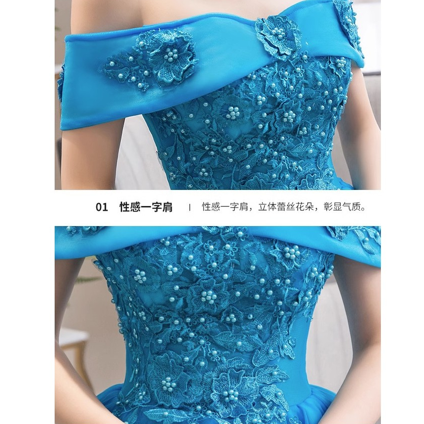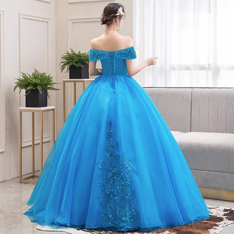 Lake Blue Performance Gown Off Shoulder Long Debut Dress
