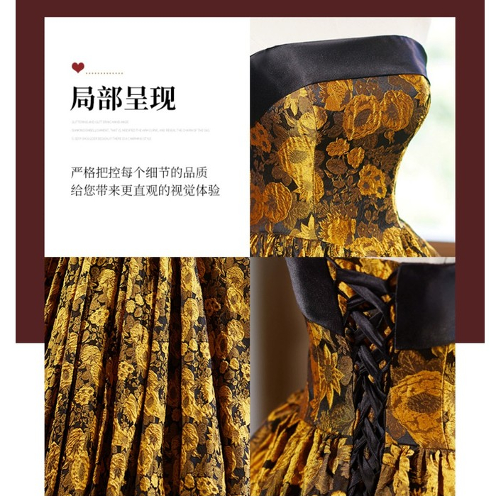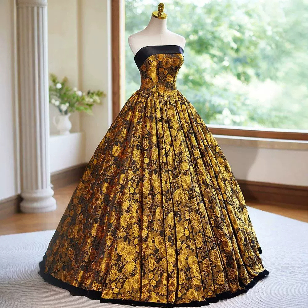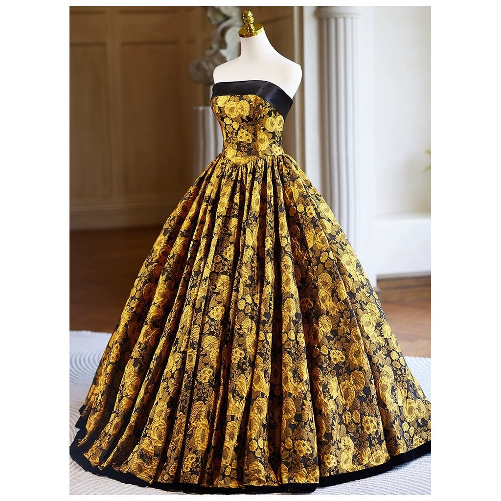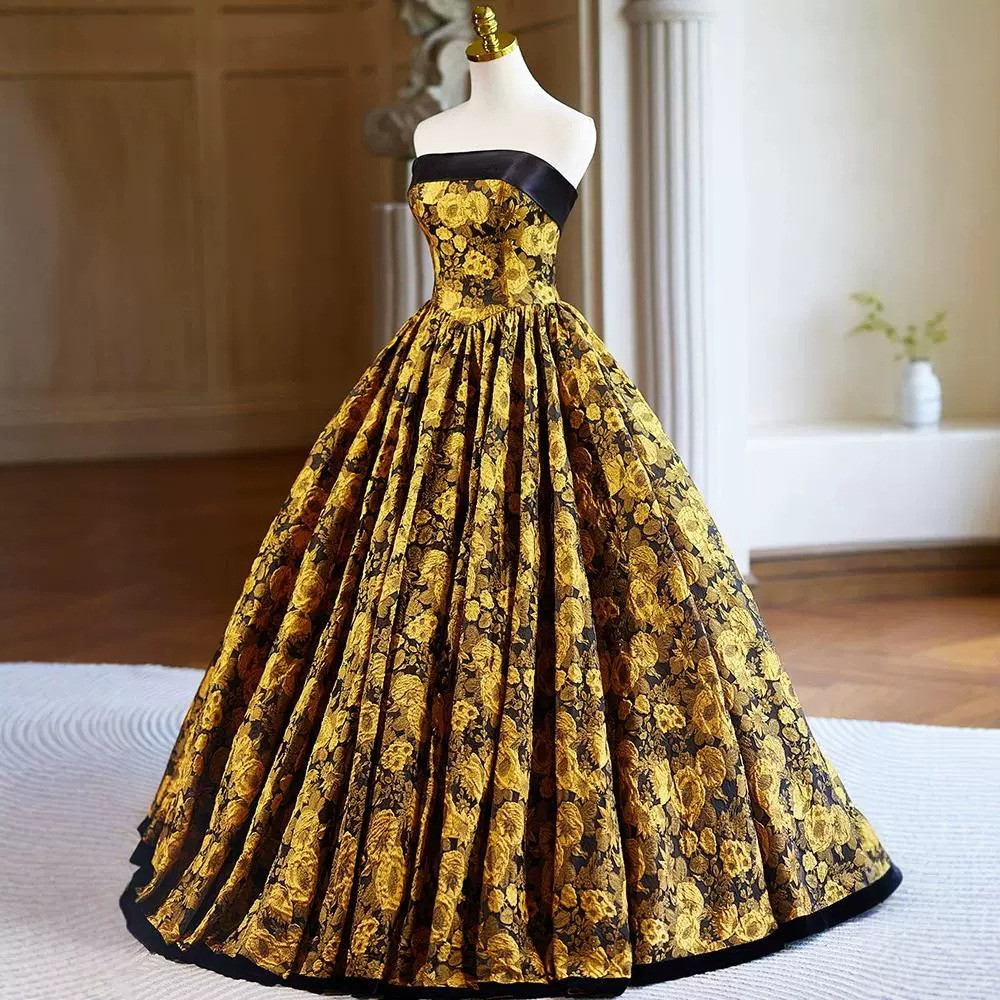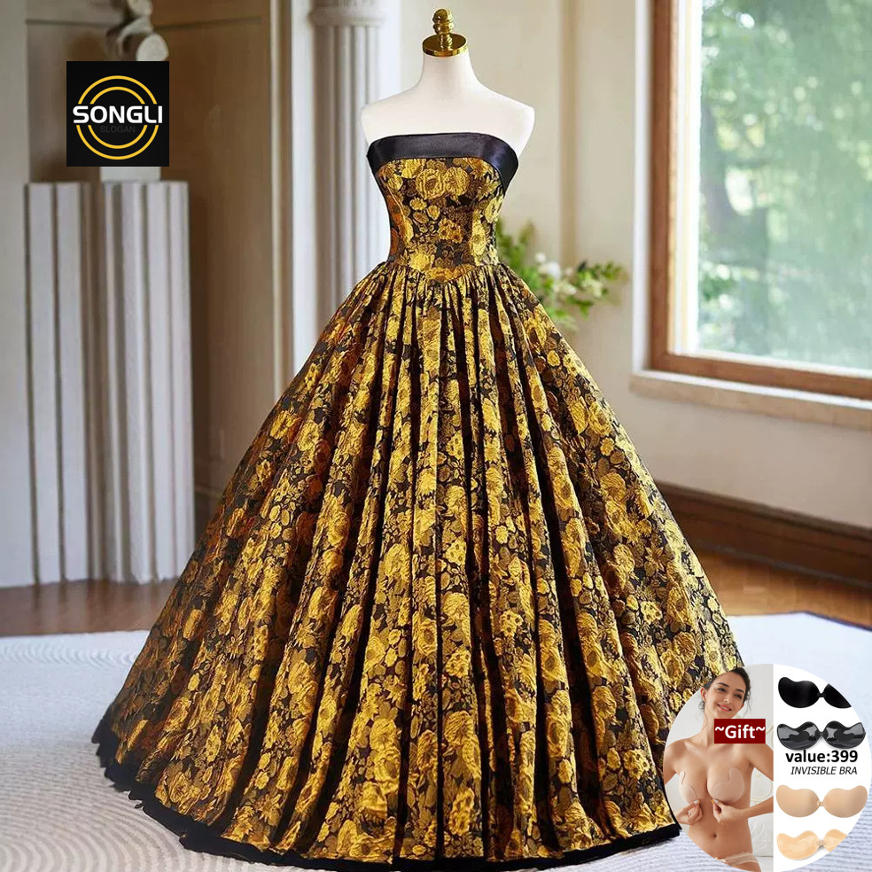 Gold strapless evening gown new graduation performance banquet maxi dress