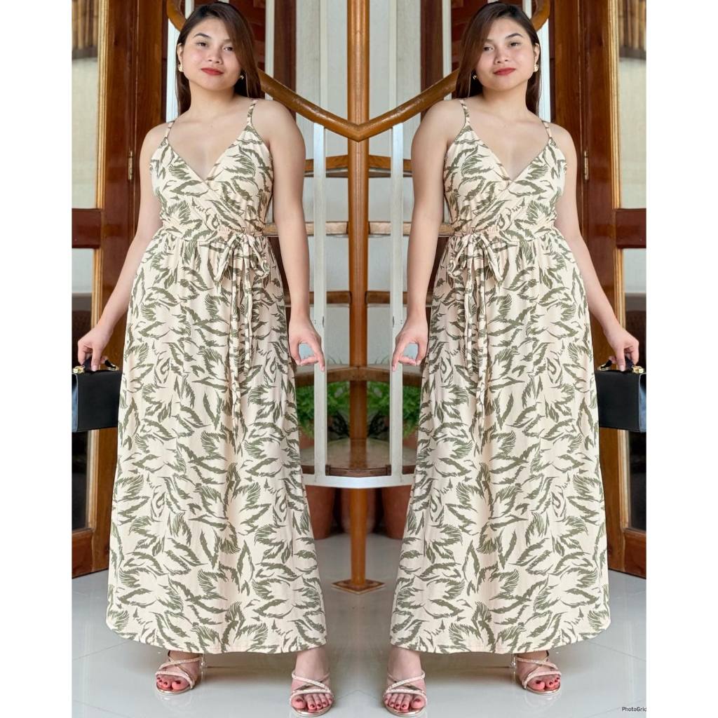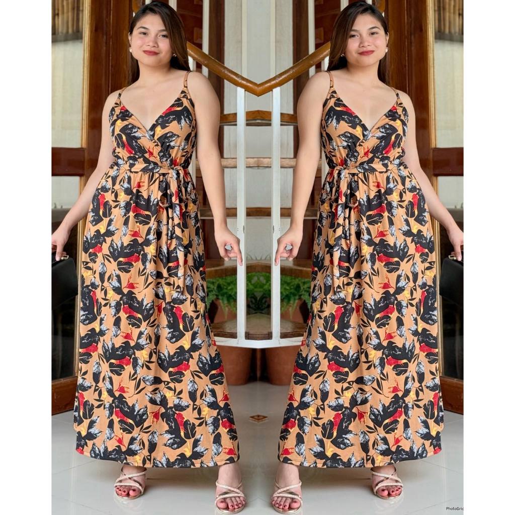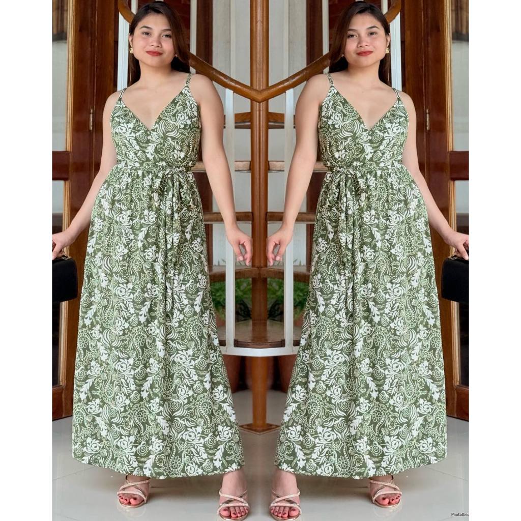 KC Strappy V Neck Overlap Cotton Spandex Women Casual Maxi Dress | mdcclothing