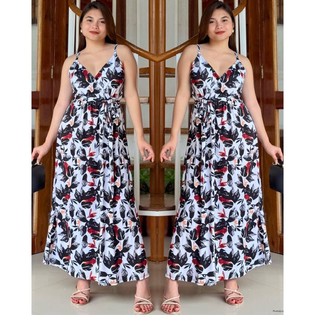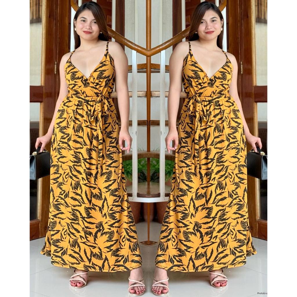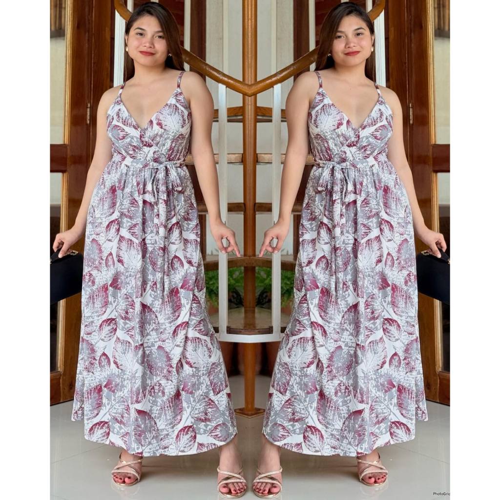 KC Strappy V Neck Overlap Cotton Spandex Women Casual Maxi Dress | mdcclothing