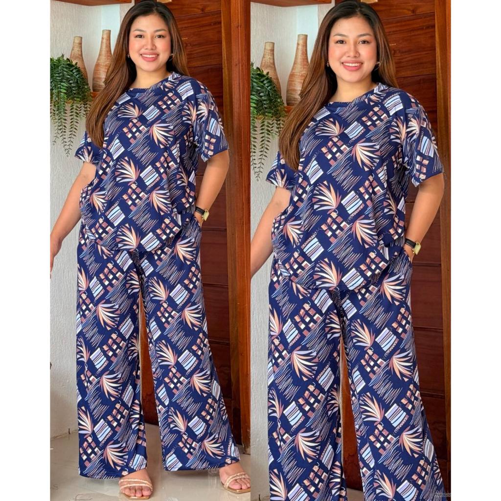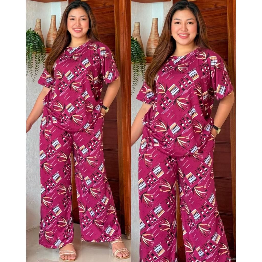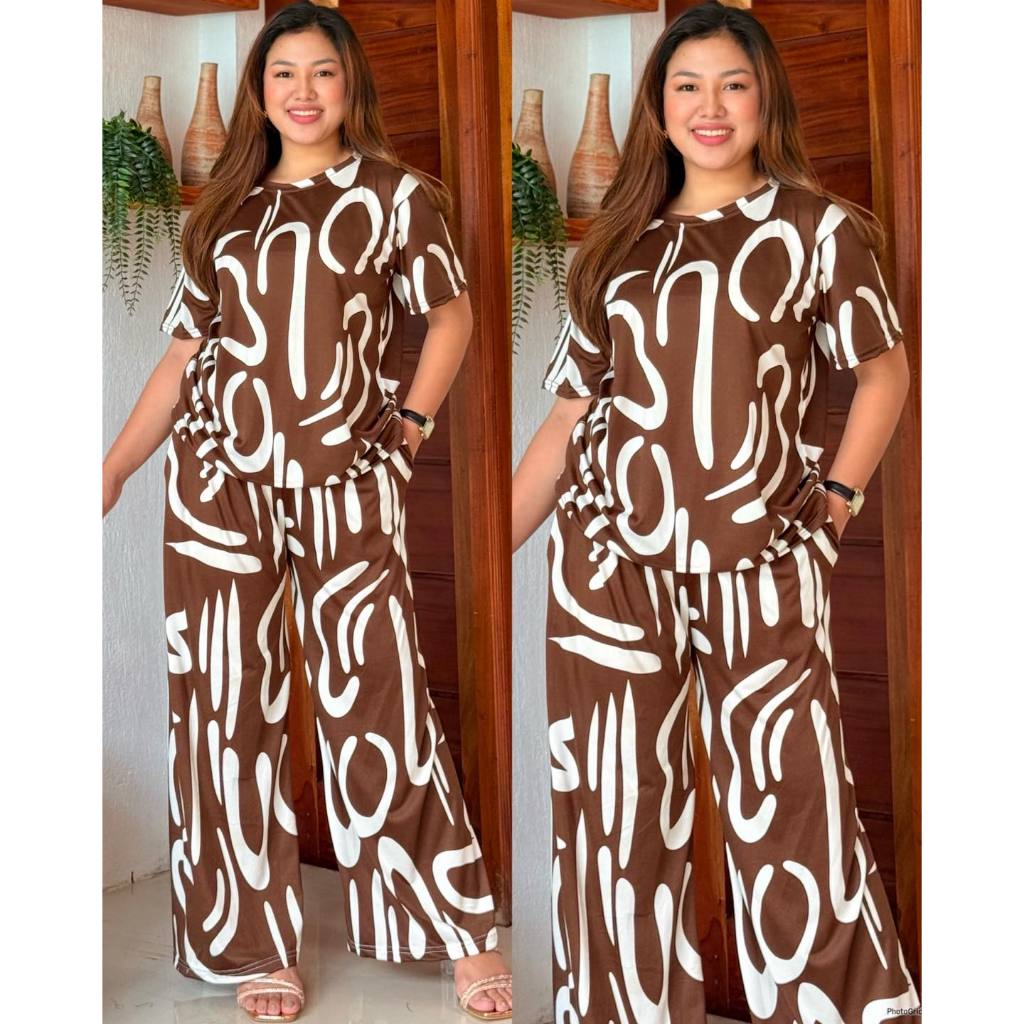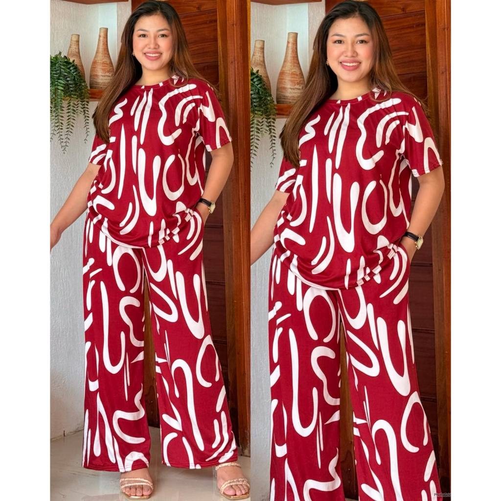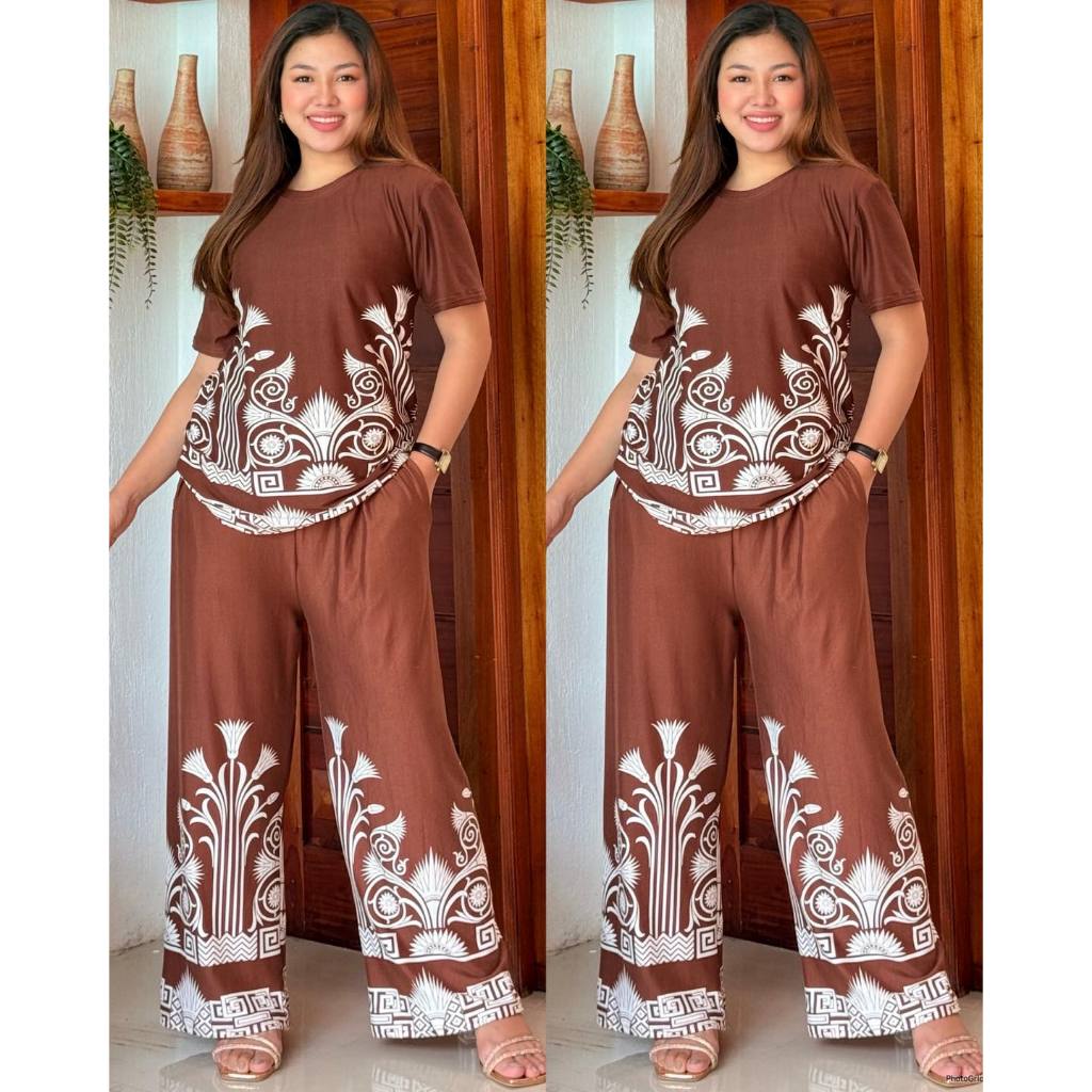 Darshini Round Neck Short Sleeves Cotton Spandex Wideleg Pants Terno Coordinates | mdcclothing