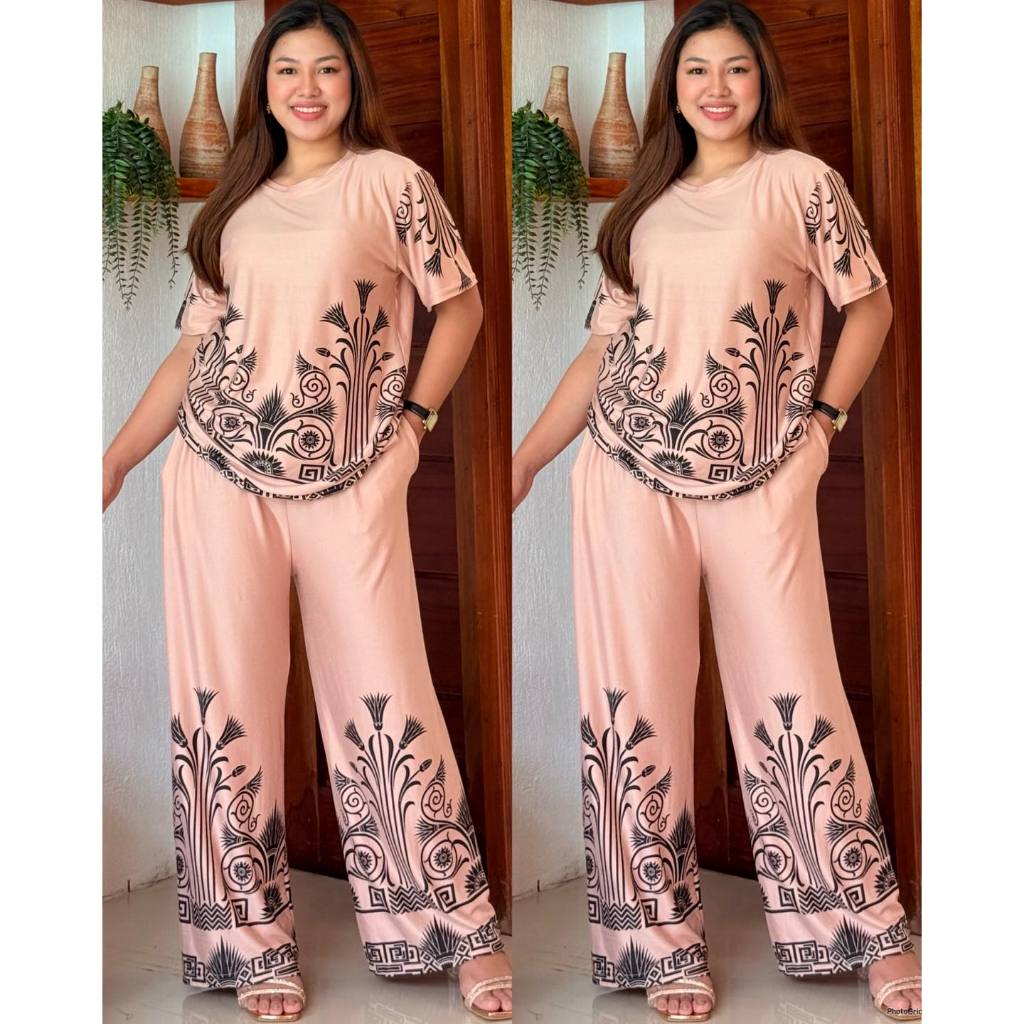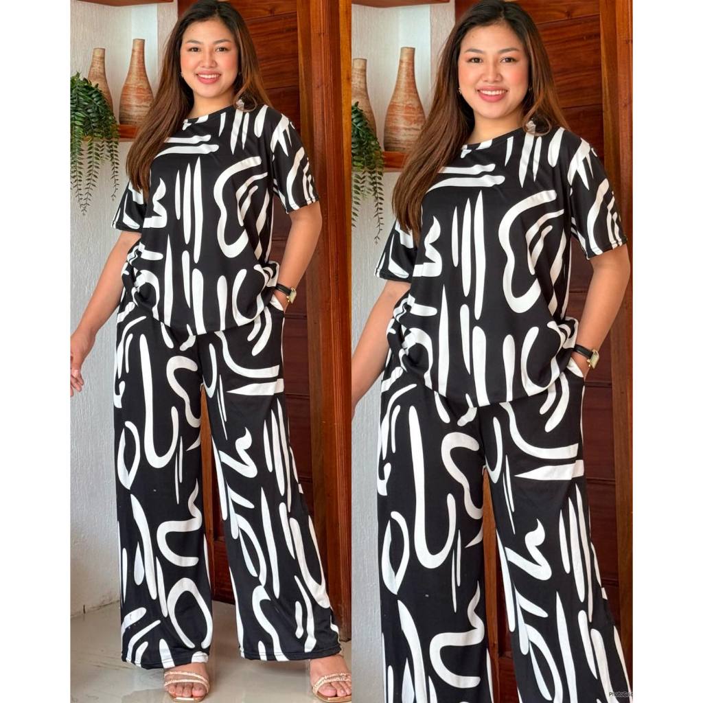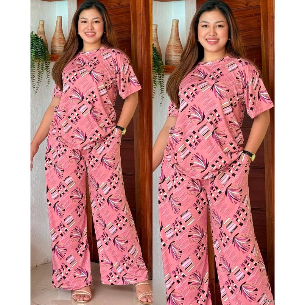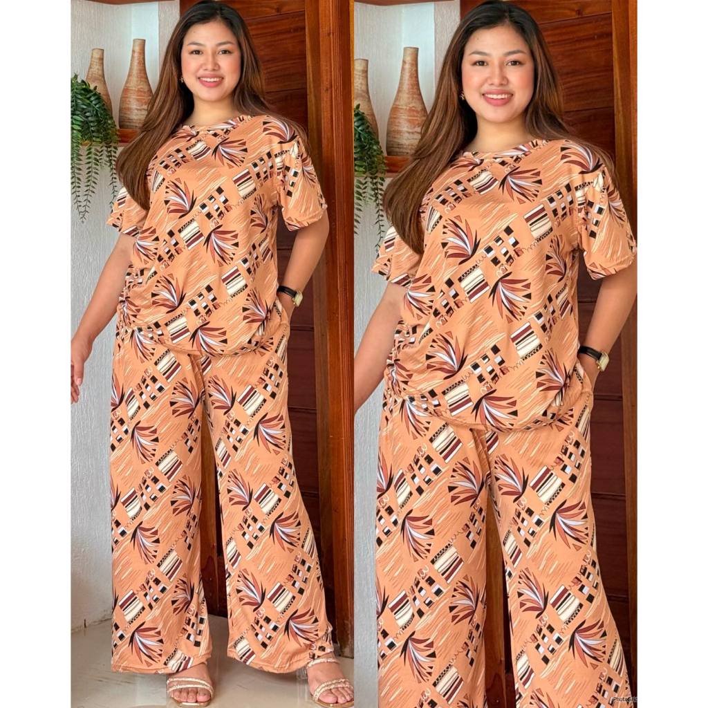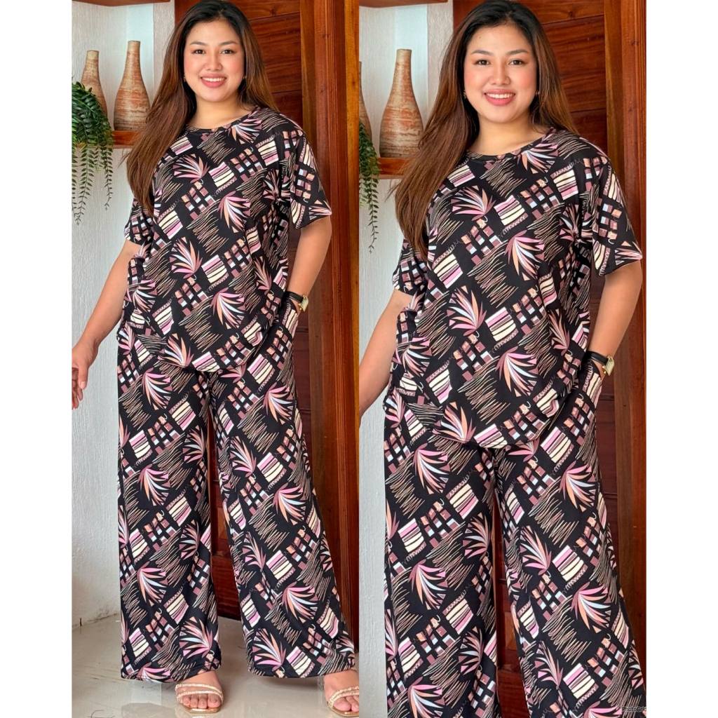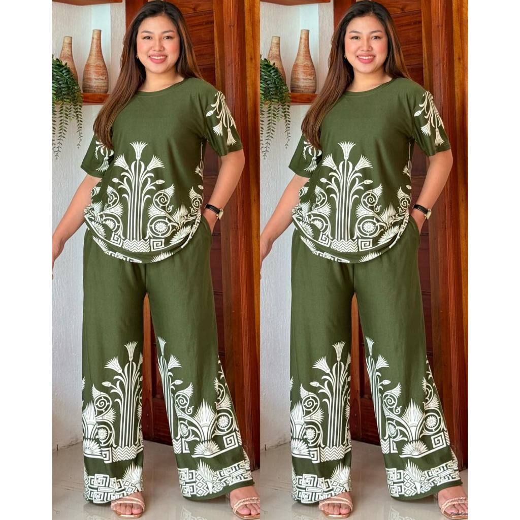 Darshini Round Neck Short Sleeves Cotton Spandex Wideleg Pants Terno Coordinates | mdcclothing