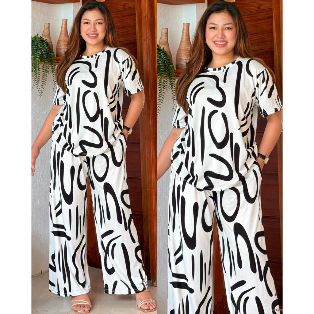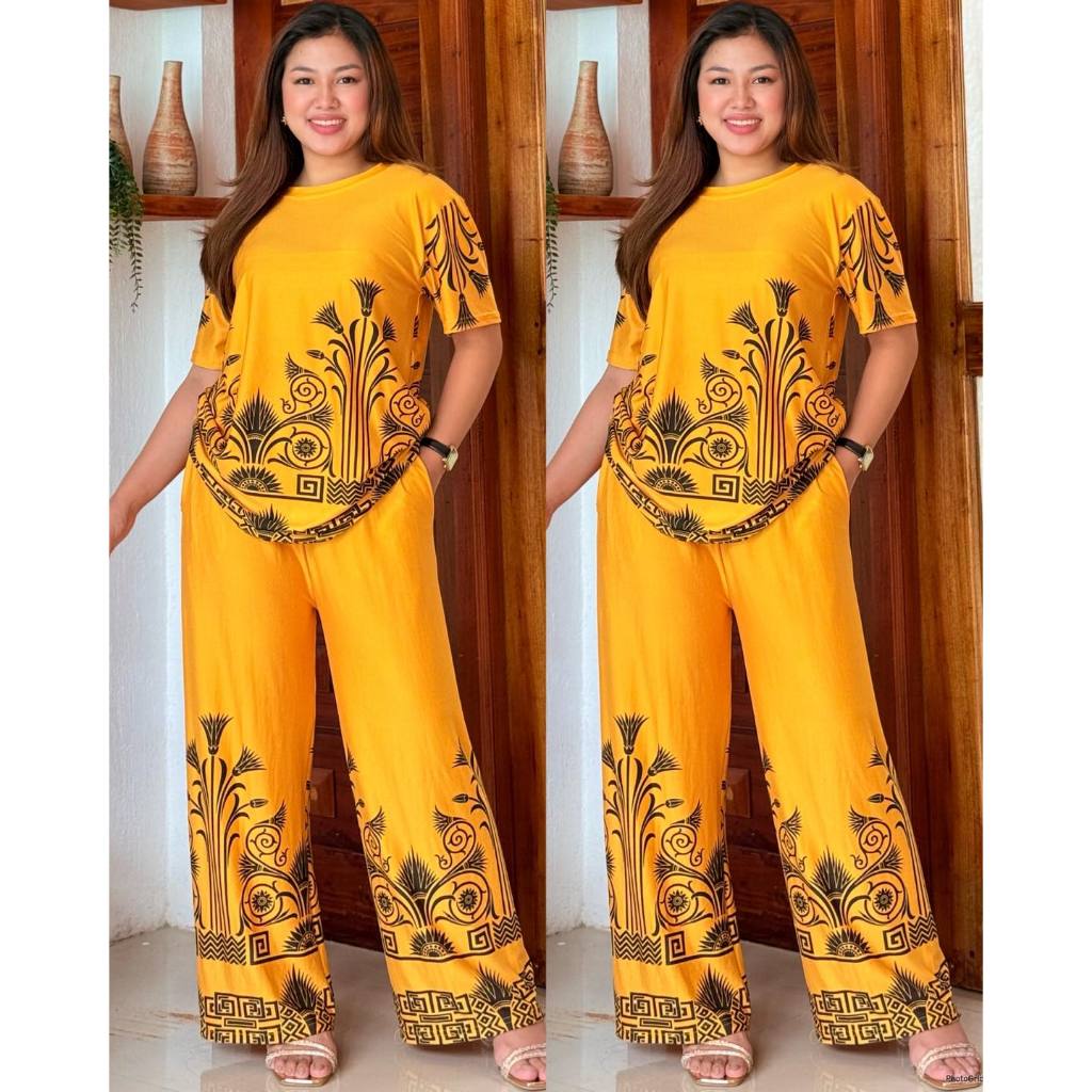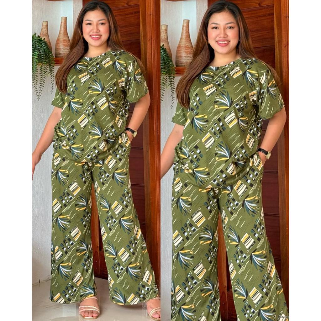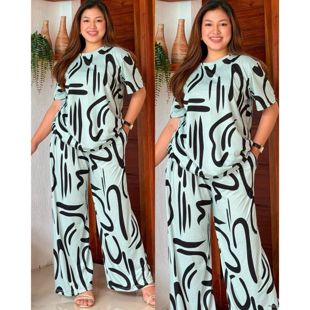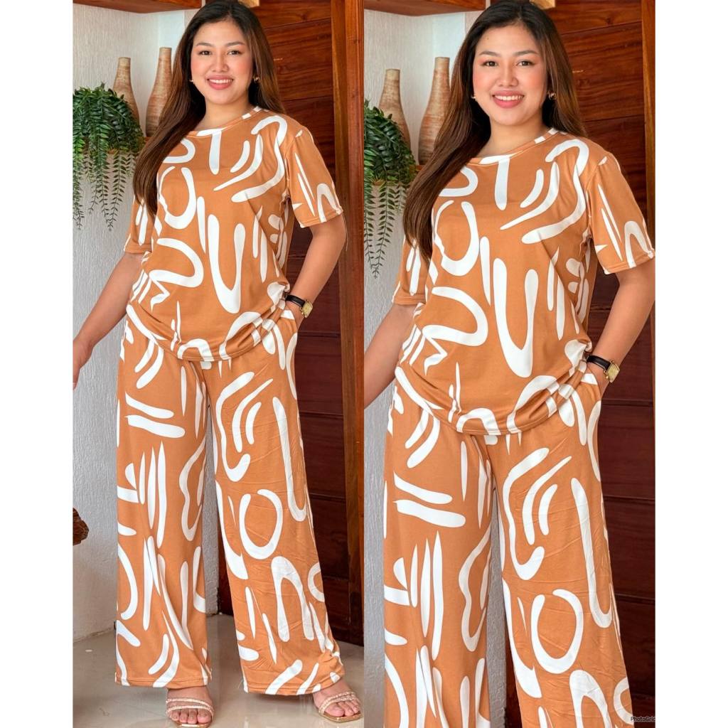 Darshini Round Neck Short Sleeves Cotton Spandex Wideleg Pants Terno Coordinates | mdcclothing