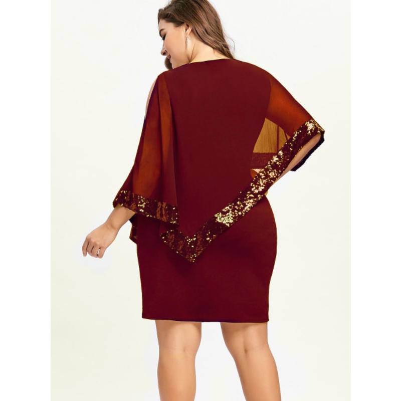 Women Plus Size Cold Shoulder Overlay Asymmetric Chiffon Strapless Sequins Dress Long Black Dress Lace