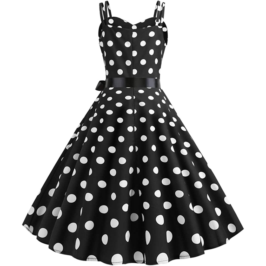 Dresses Women's Vintage Retro Summer Spaghetti Straps Polka Dot Swing Pleated Skirt Party Dress Cocktail Dress