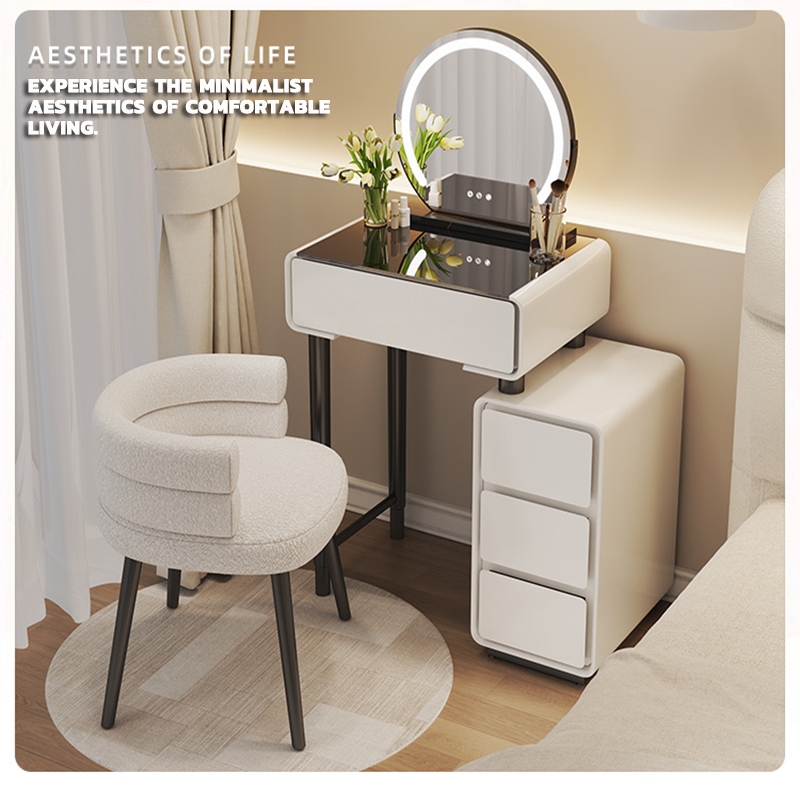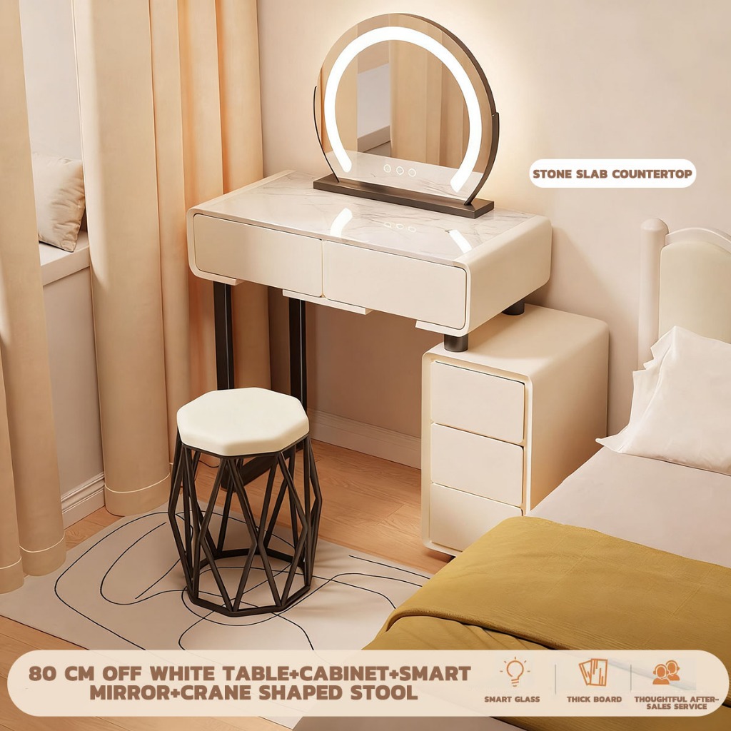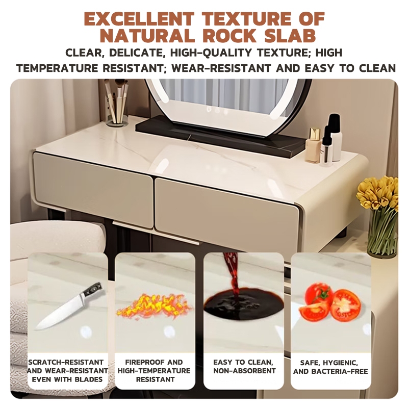 Makeup Vanity Desk with LED Mirror, Storage Drawers and Durable Stone Slab Countertop