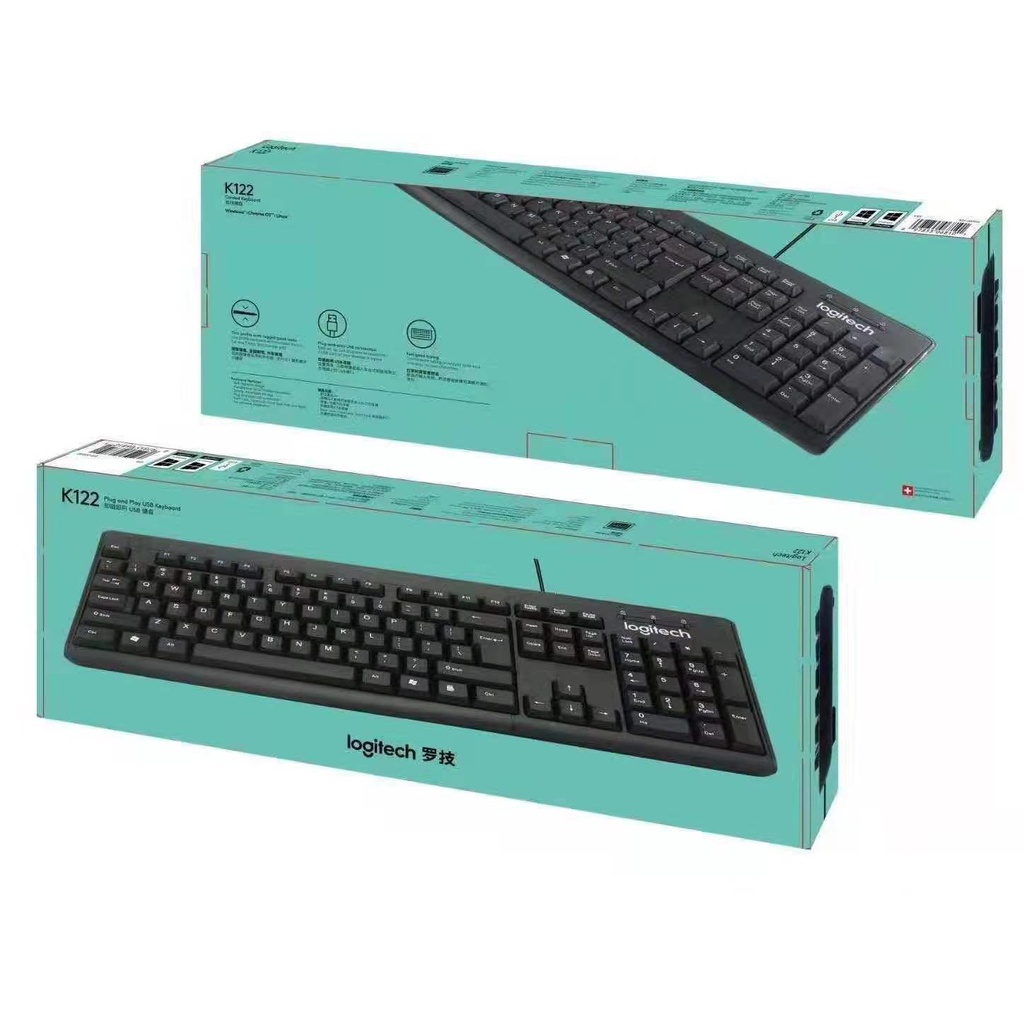 Logitech K122 USB wired standard keyboard, full-size, splash-proof, PC/laptop