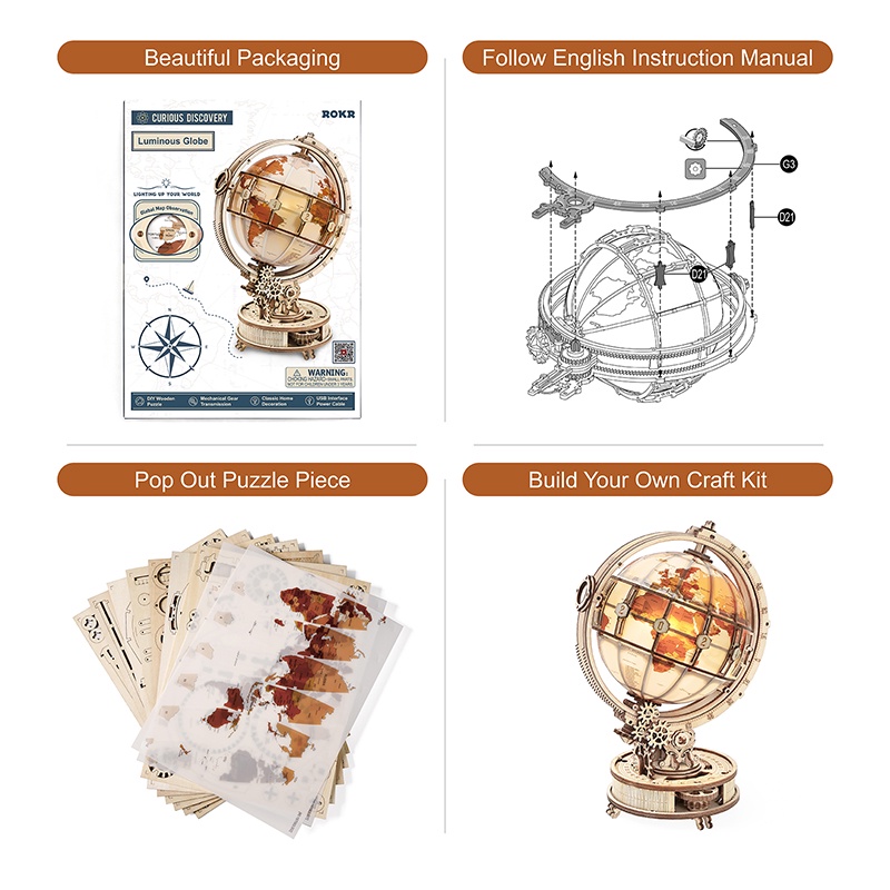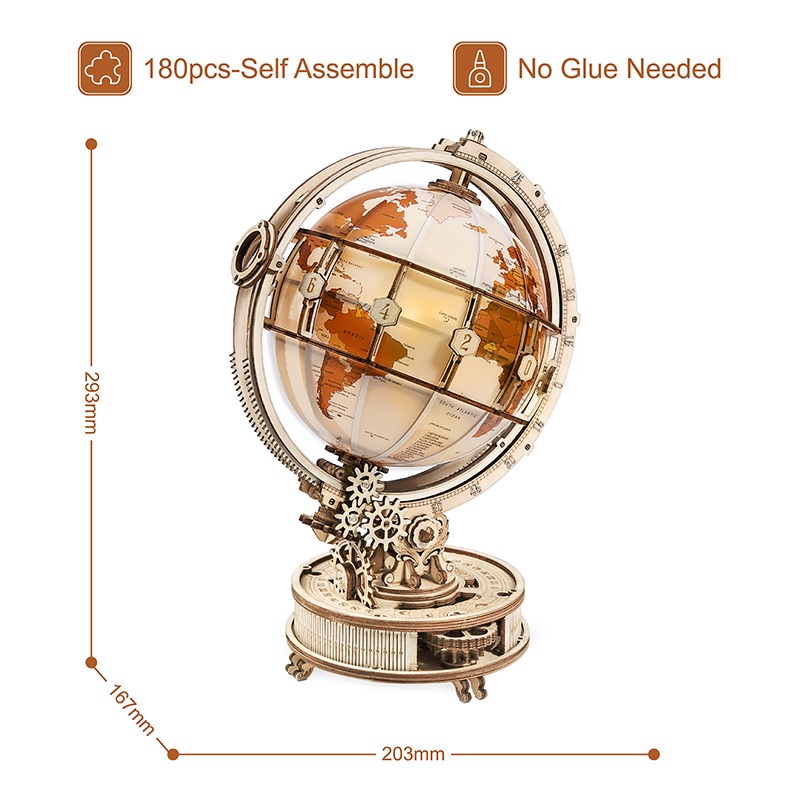 Robotime ROKR Luminous Globe 3D Wooden Puzzle Games Assemble Model Buliding Kits Toys Gift for Children Boys