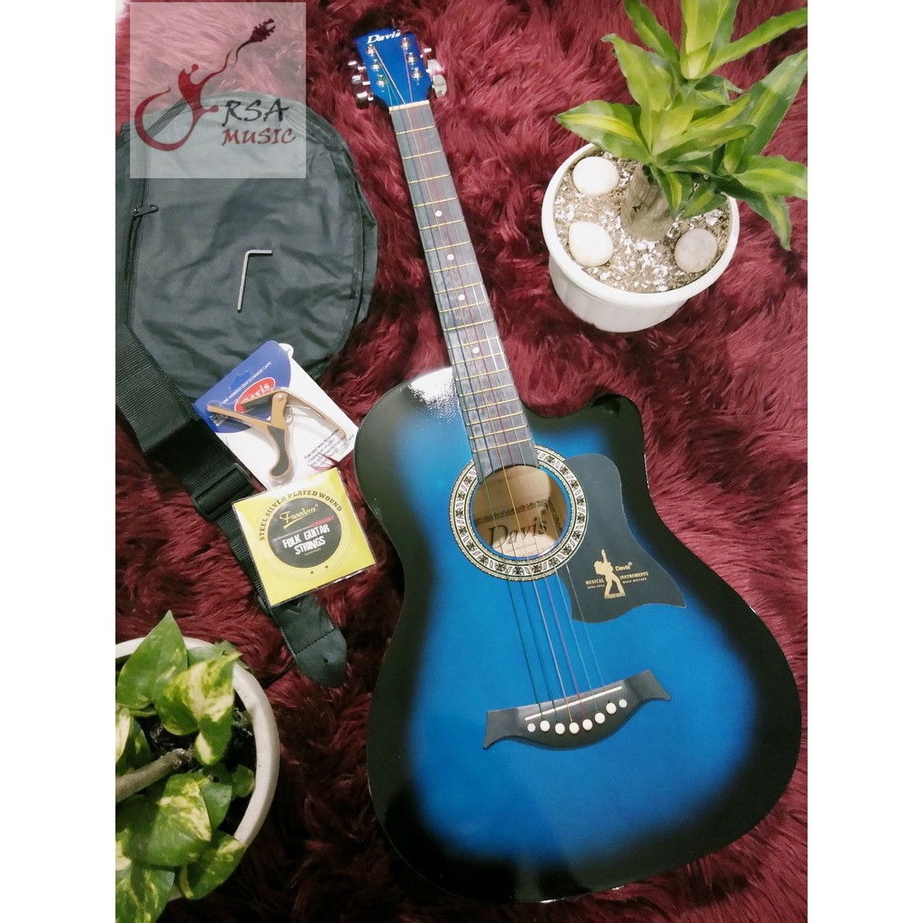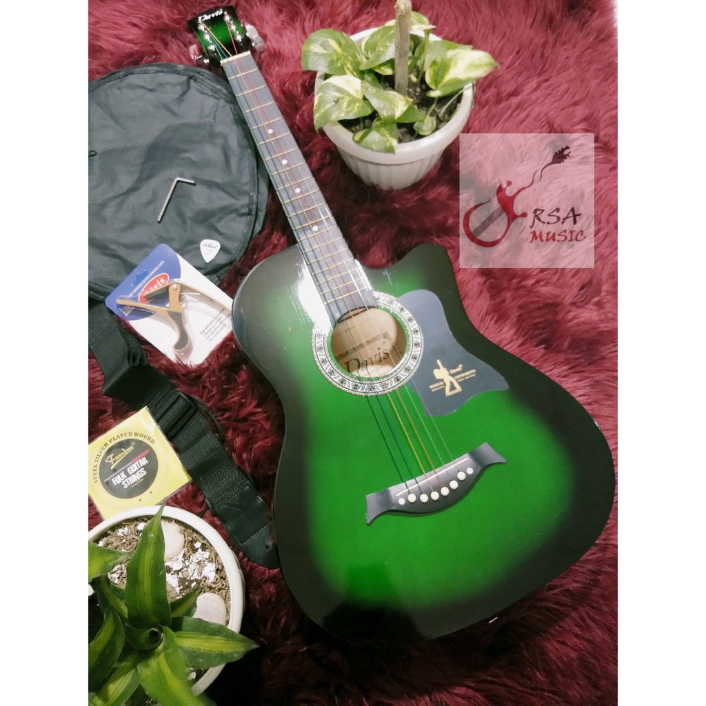 Davis Acoustic Guitar Low Action w CAPO, STRINGS, BAG, PICK by RSA MUSIC