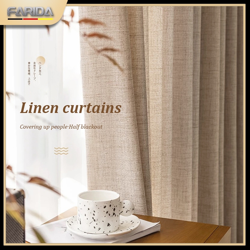 FARIDA Japanese Aesthetics flax Sheer Curtain 5.2ft&7.2ft SIZE Super Soft fluffy Linen fabric