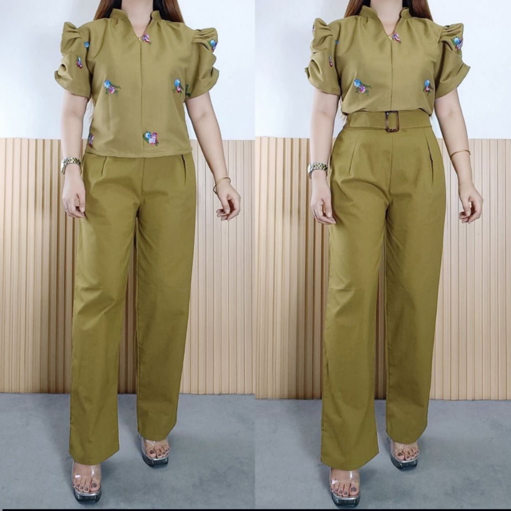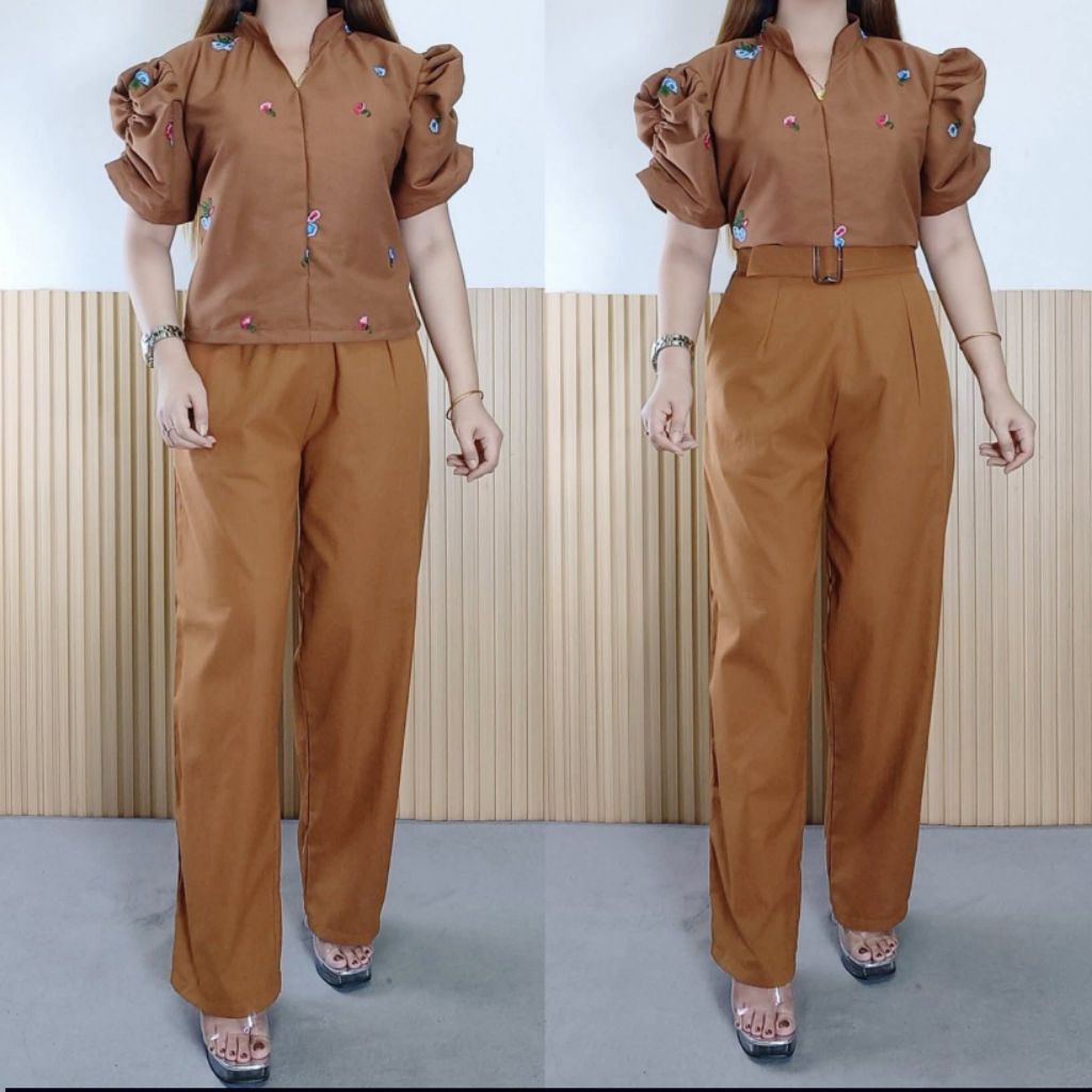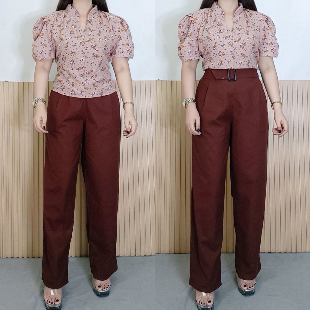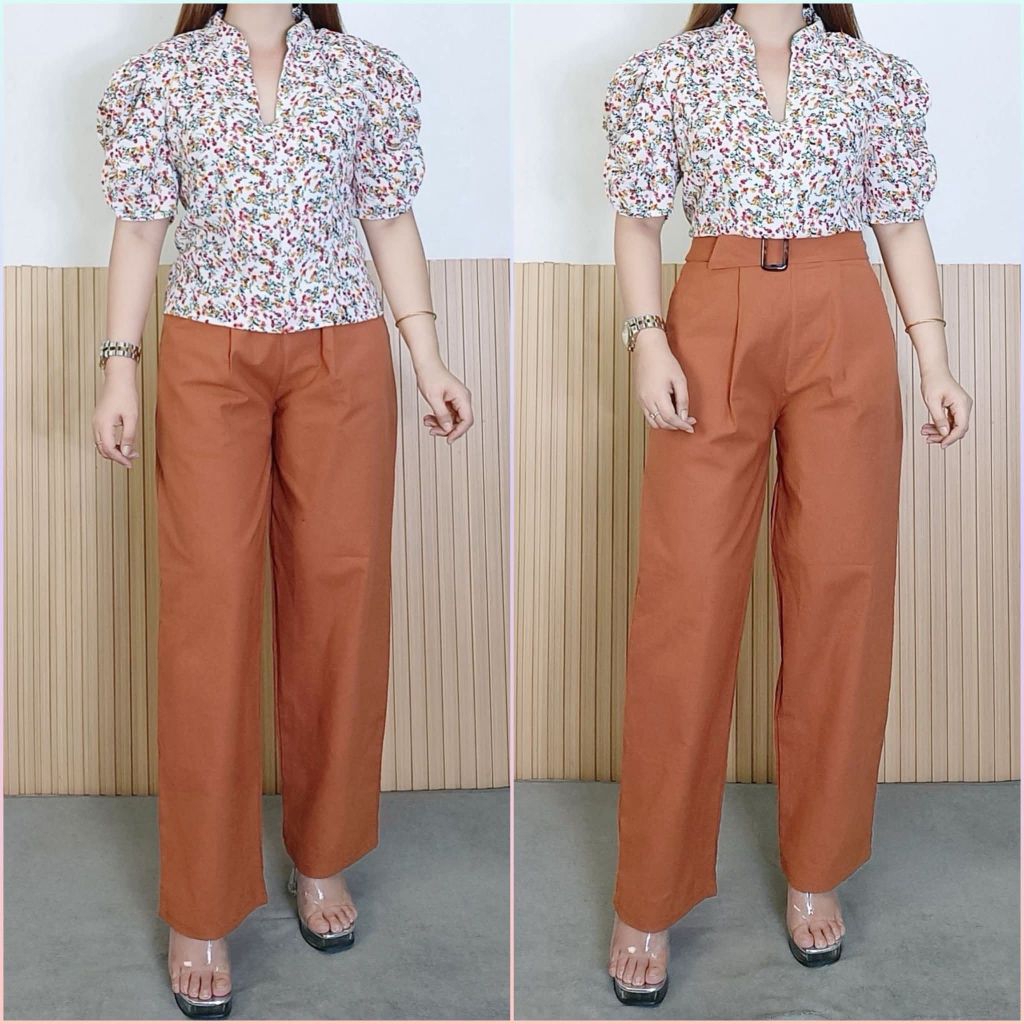 ATHENA TERNO PANTS WITH BELT | COTTON LINEN | FREESIZE M-XL