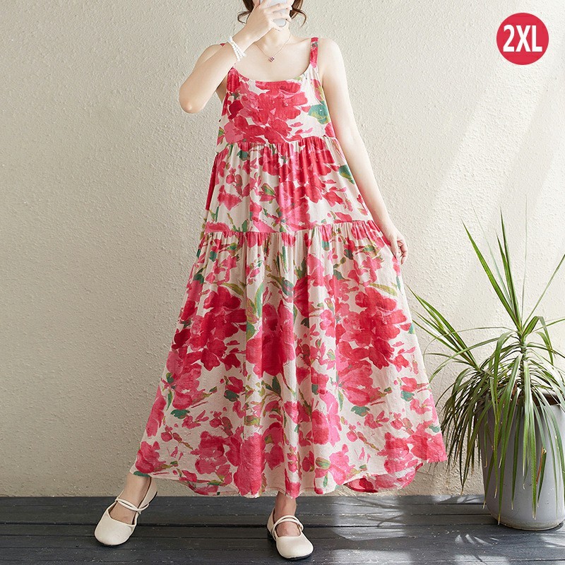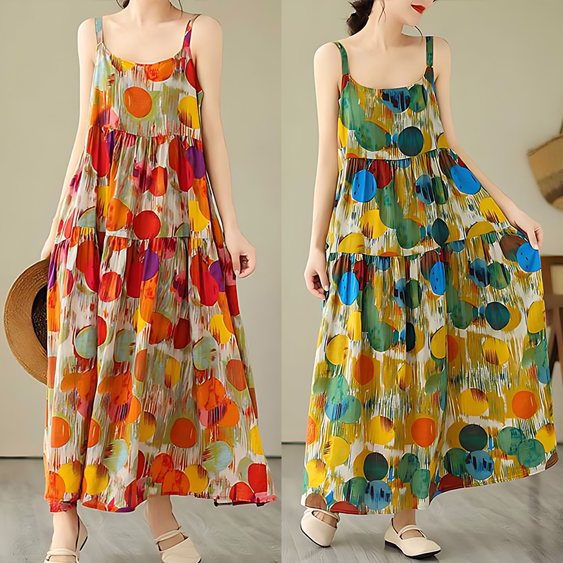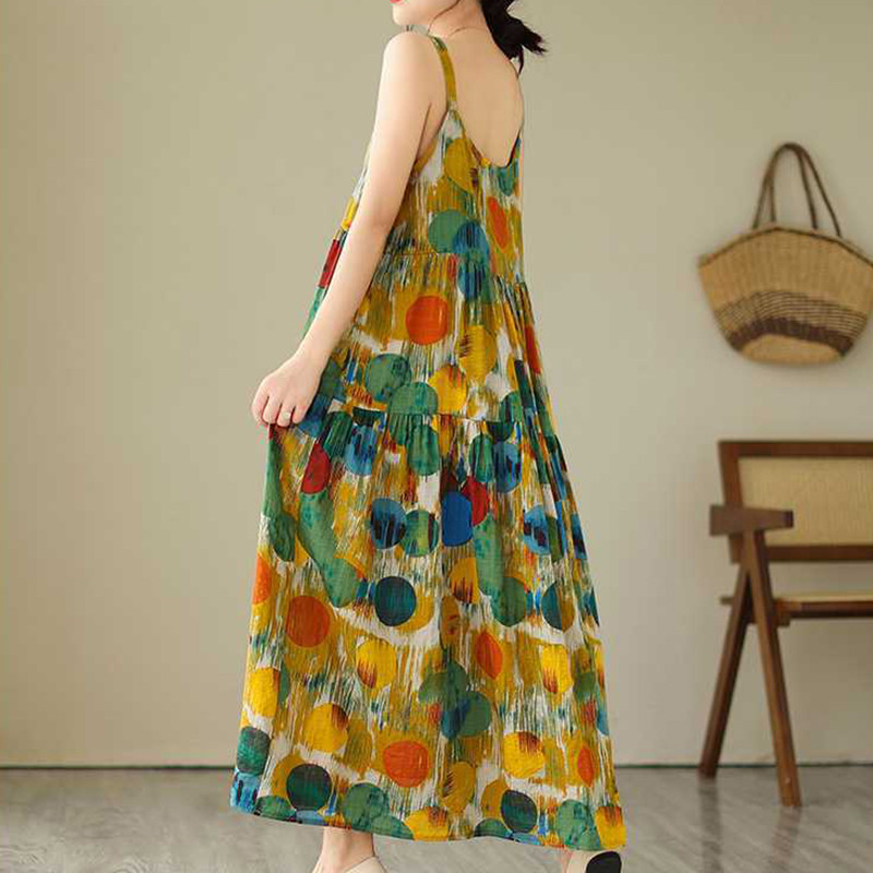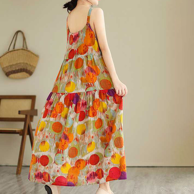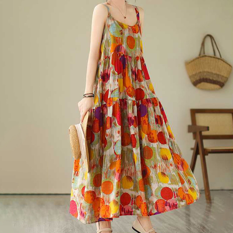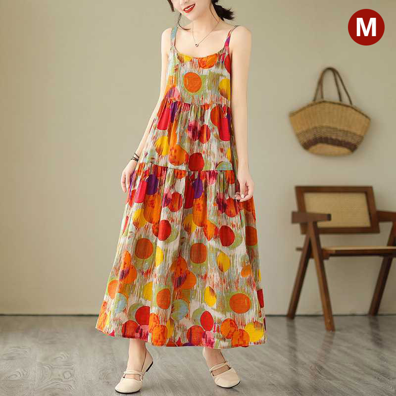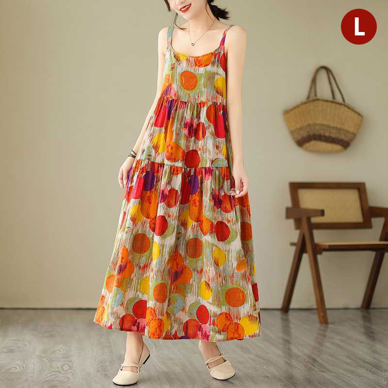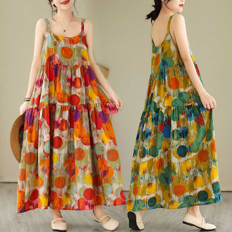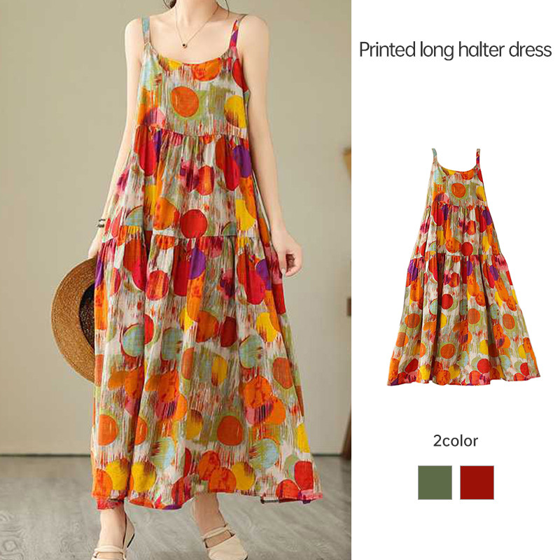 Korean Version Loose Printed Dress Long Slip Dress Women Temperament Elegant Dress S-2XL Size Vo