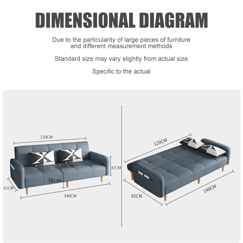 Sofa Bed 1-3 Seaters Foldable - Heavy Duty Fabric Couch with Free Pillows for Small Spaces