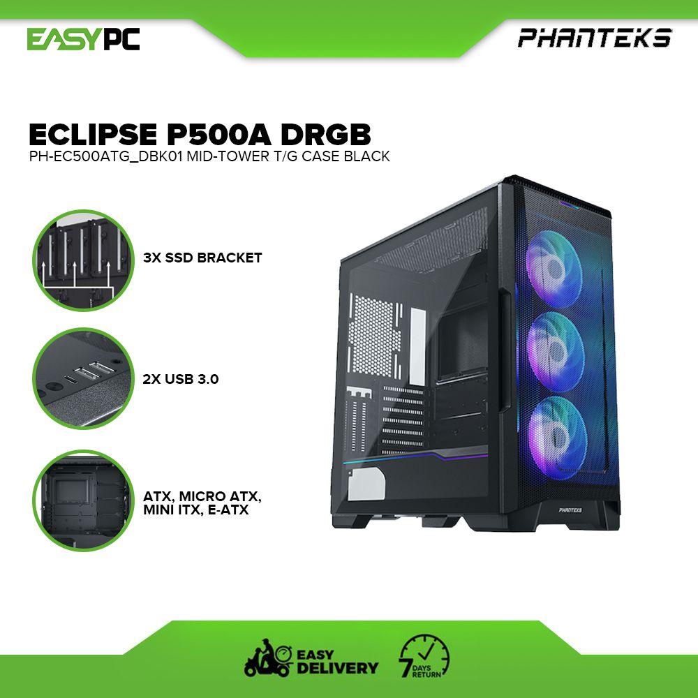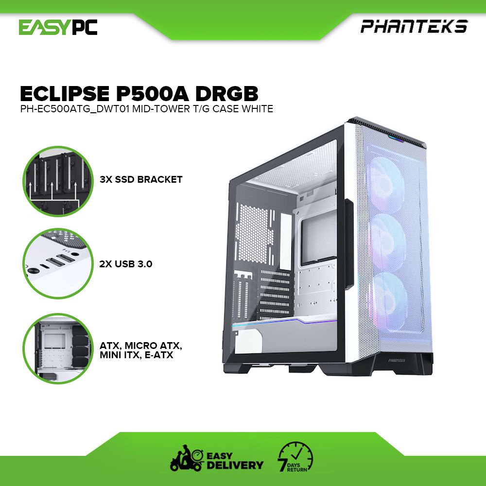 Phanteks Eclipse P500A DRGB - Black or White, Mid-Tower T/G Case PH-EC500ATG DBK01/ DWT01 4JTP