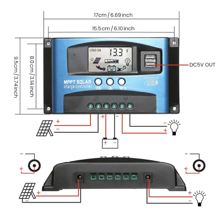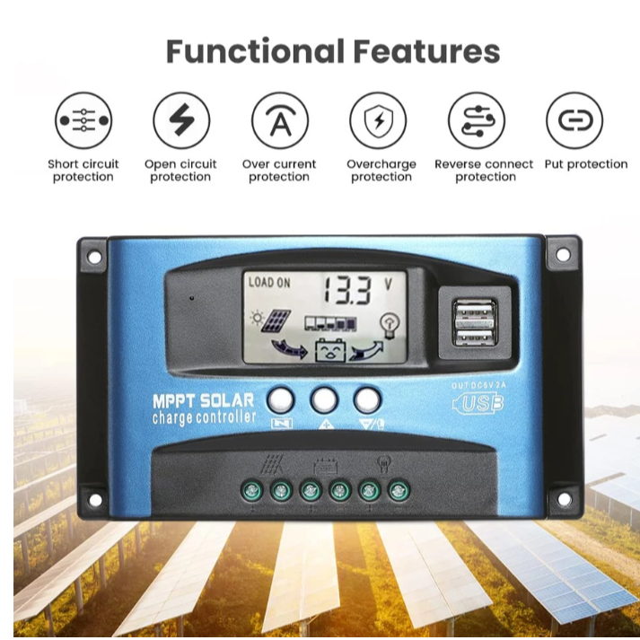 100/50/30A Mppt Solar Charge Controller 12V/24V Battery Regulator Solar Panel Controller LCD Display