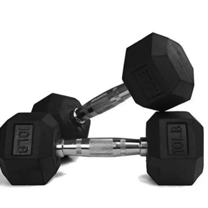 Black Rubber Coated Hex Dumbbells Weight Training