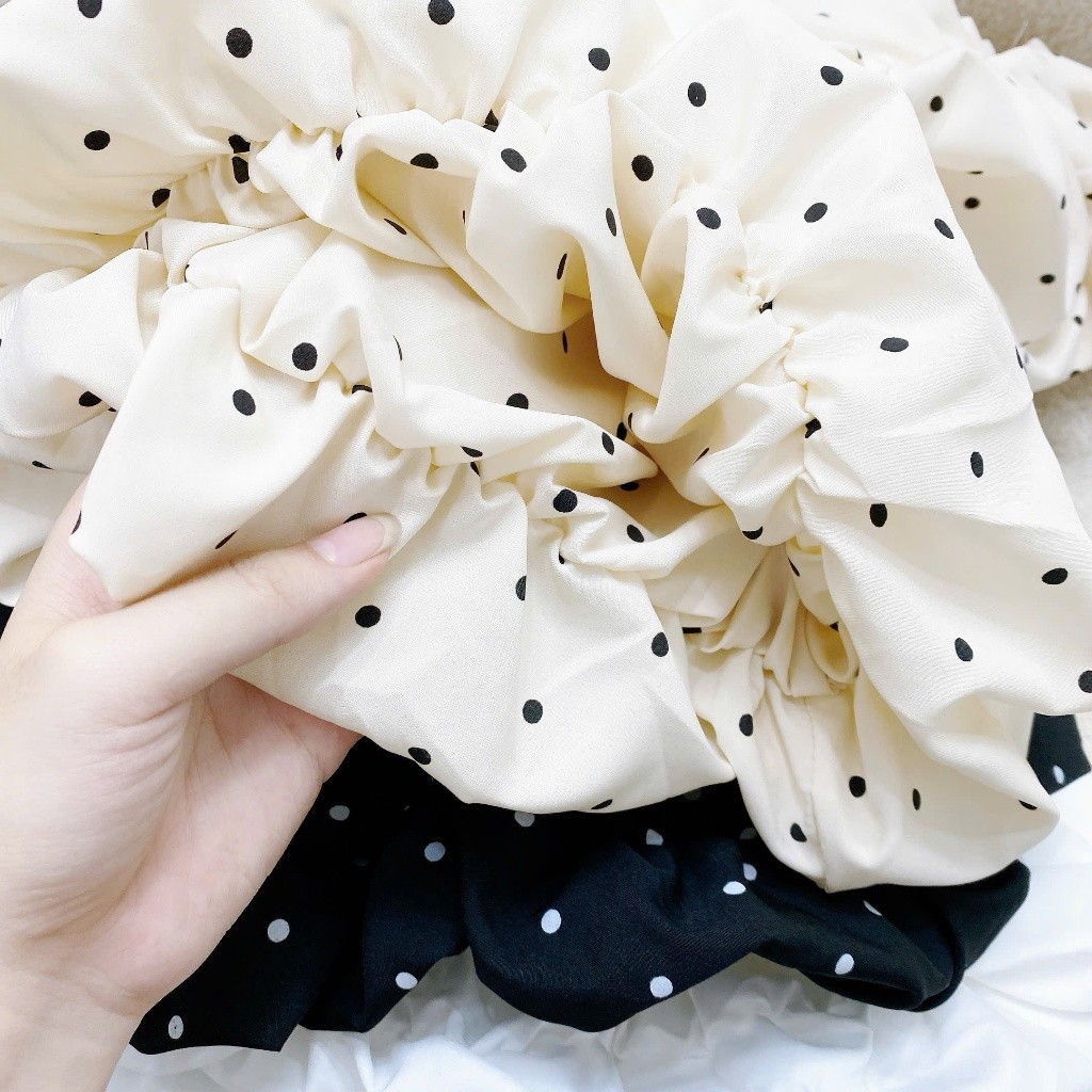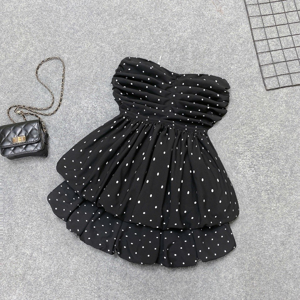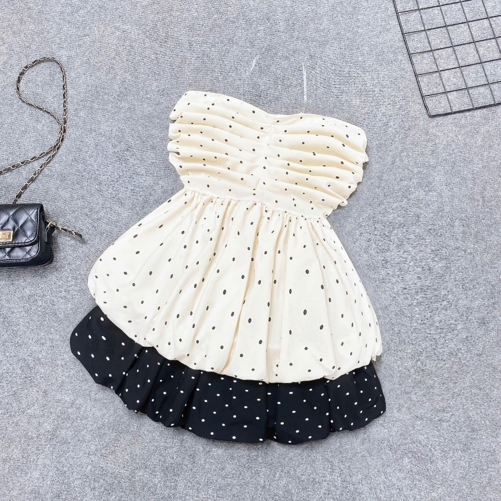 Women's big size set with 2 flared straps and a polka dot pumpkin skirt with comfortable elastic waist - SET (A186+CV423) plus size terno for women