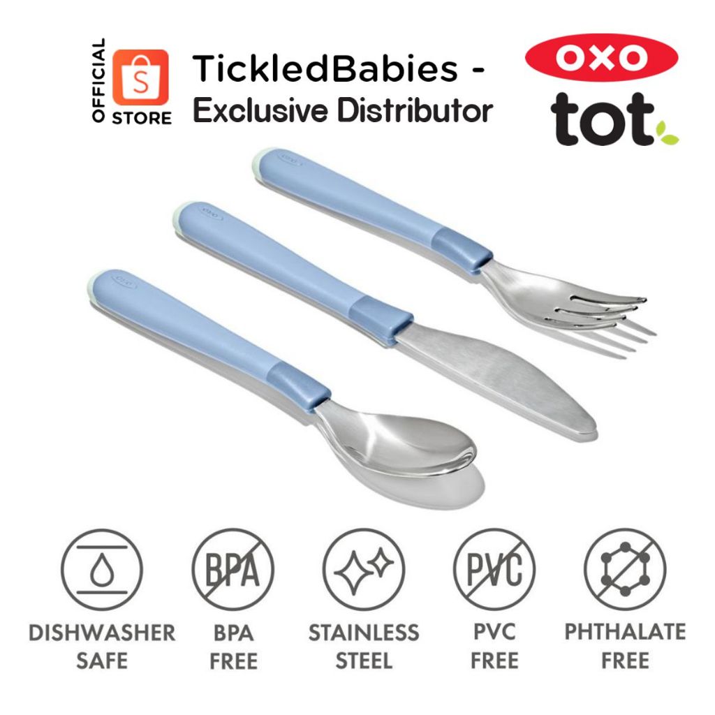 OXO Tot Cutlery Set for 3 yrs old up ( oxotot toddler stainless utensils spoon fork knife )