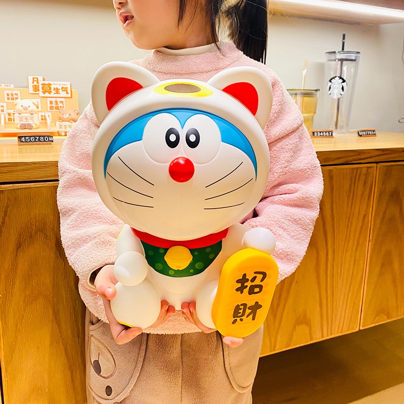 Doraemon Piggy Bank Ornaments Lucky Cat God Of Wealth Doll Can Access Children Birthday Gifts