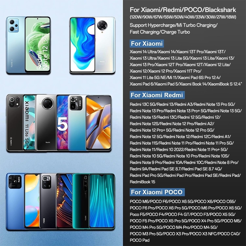 Xiaomi 67W fast turbo charger for mi Redmi 120W Note14 13 12 1110 9 8 7 pro K20 K30 Pro Poco adapter