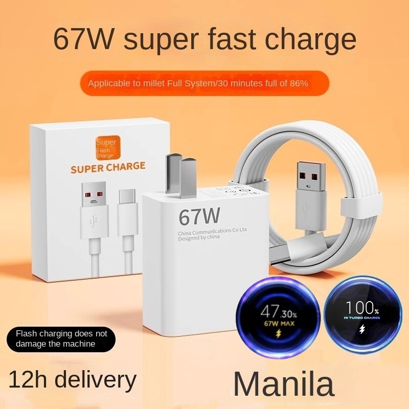 67W Turbo Charger USB-C 6A Fast Charging for Xiaomi Redmi Note 10 11 12 13 Pro Poco X4 X5 F4 Adapter
