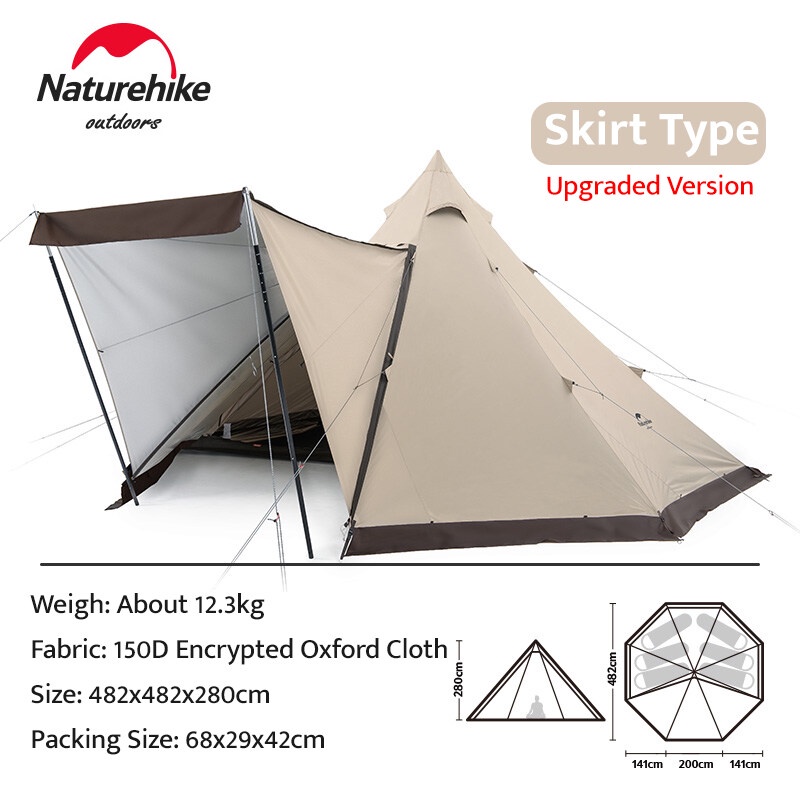 Naturehike RANCH Pyramid Tent 5-8 Persons Premium Octagonal Family Shelter With Skirt Camping Tent