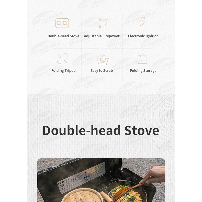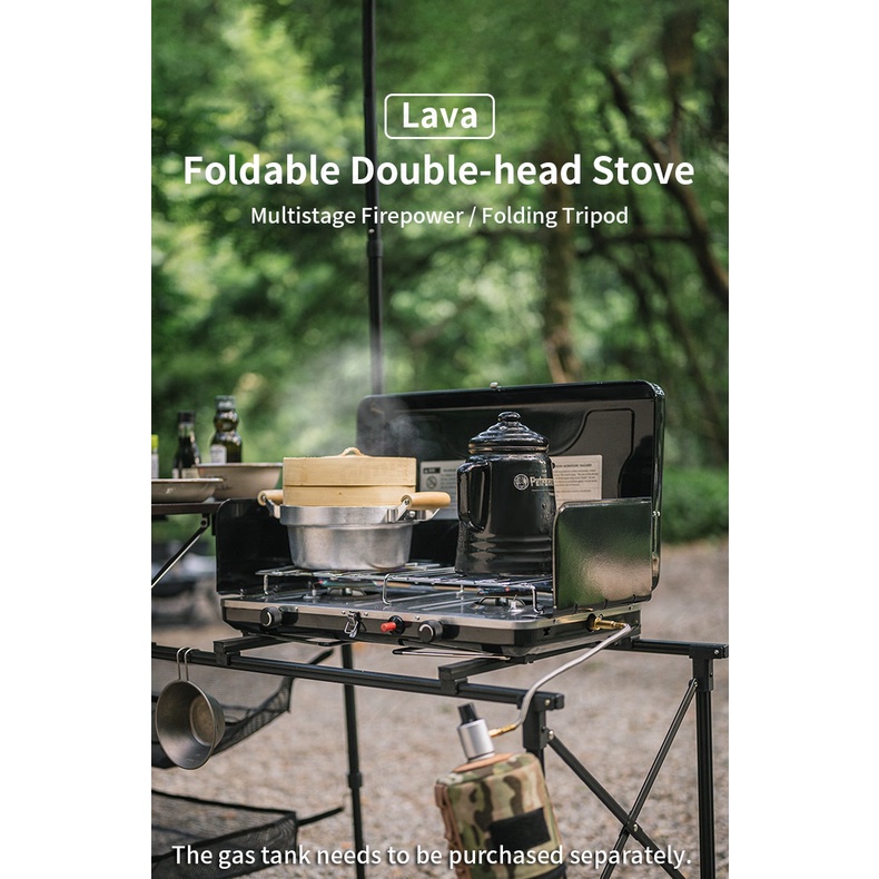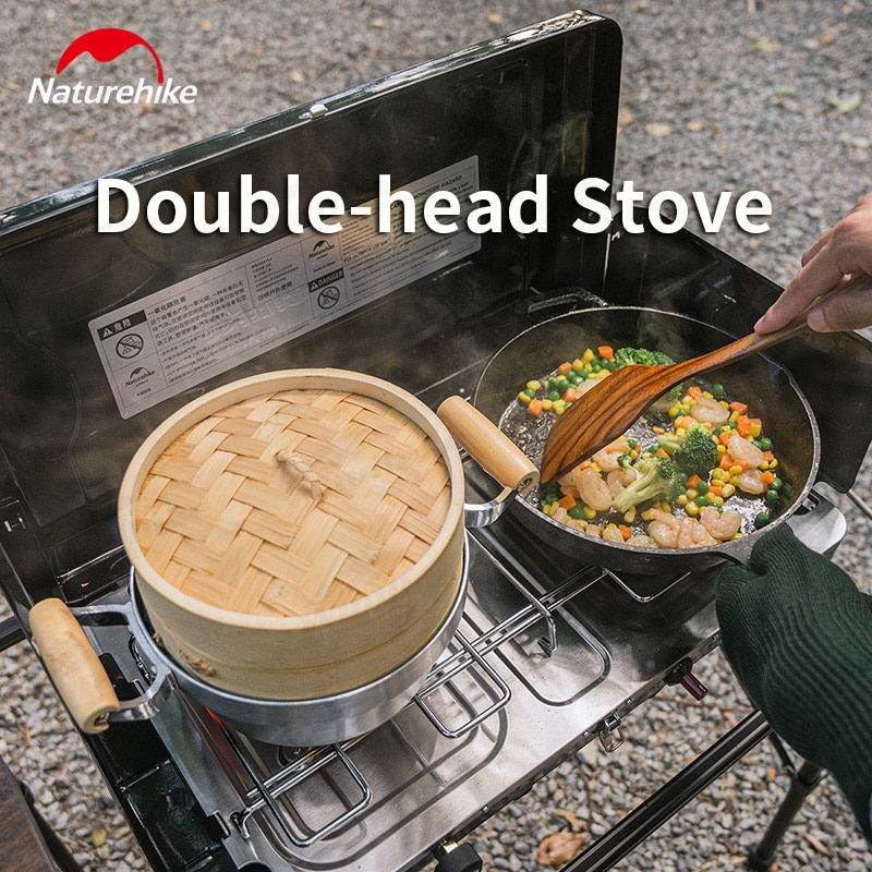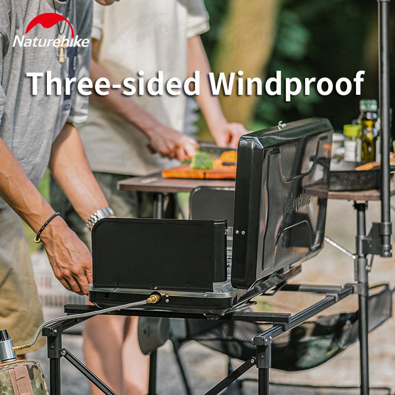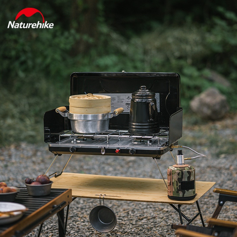 Naturehike Folding Double Head Gas Camping Stove Outdoor Portable Butane Dual Burner w/ Wind Screen