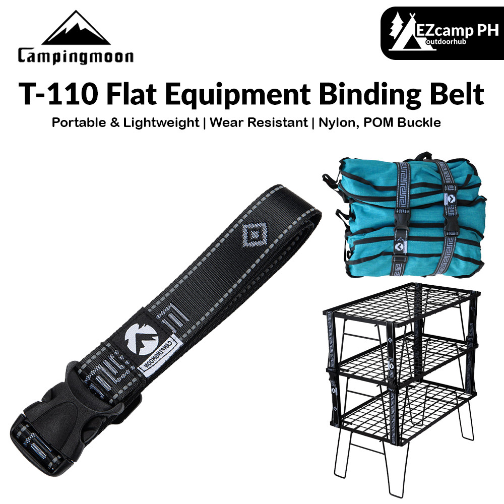 CAMPINGMOON T-110 Flat Equipment Binding Belt Black Thick Nylon POM Buckle 145cm Outdoor Camping
