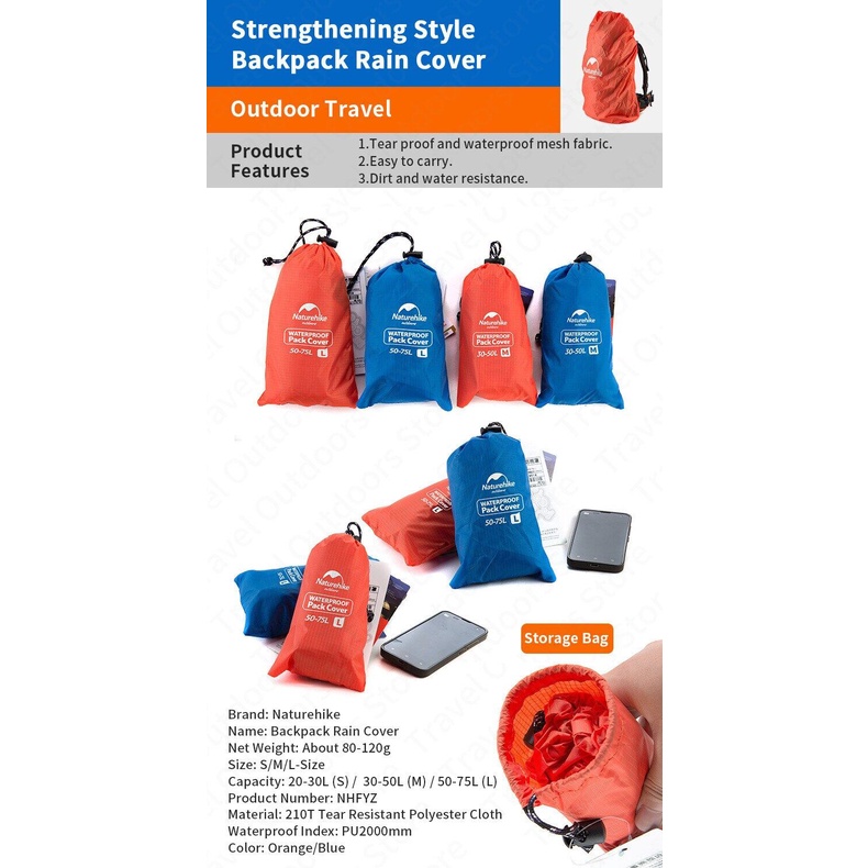 Naturehike 20-70L Backpack Rain Cover Portable Lightweight Climbing Sport Back Pack Foldable