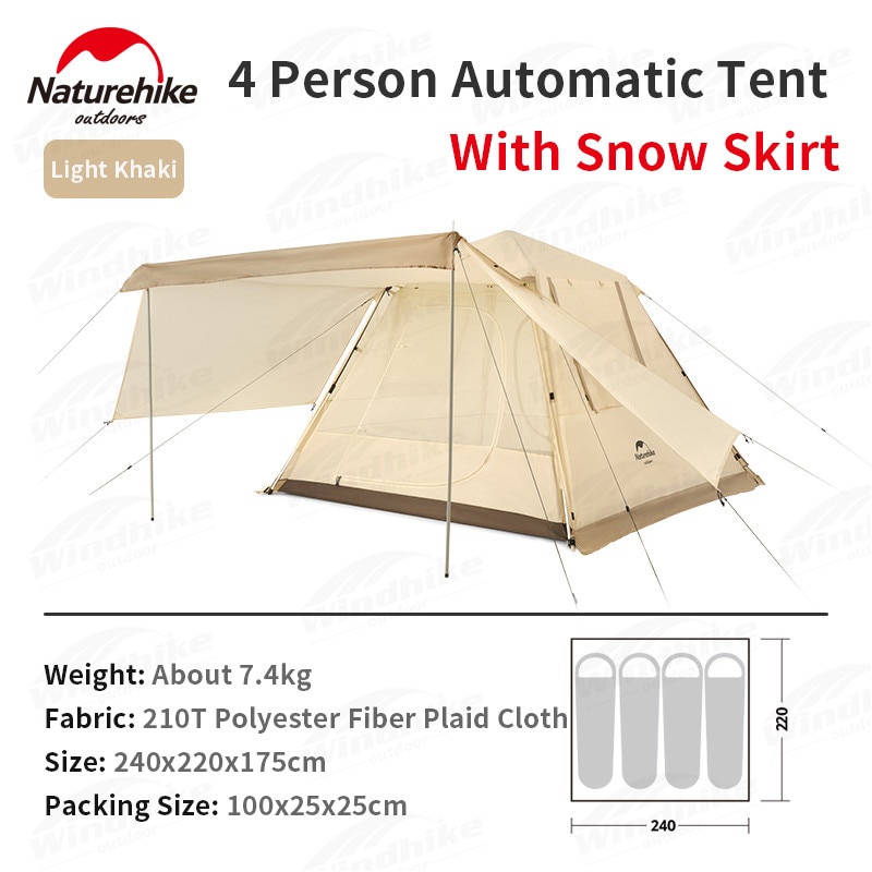 2022 Naturehike ANGO 4 Person Automatic Pole Camping Tent with Awning Canopy Waterproof Auto Pop up