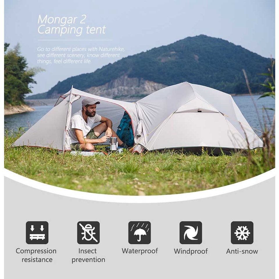 Naturehike MONGAR 2 Series 3 Season Camping Tent for 2 Person 15D 20D 210T Ultralight Waterproof