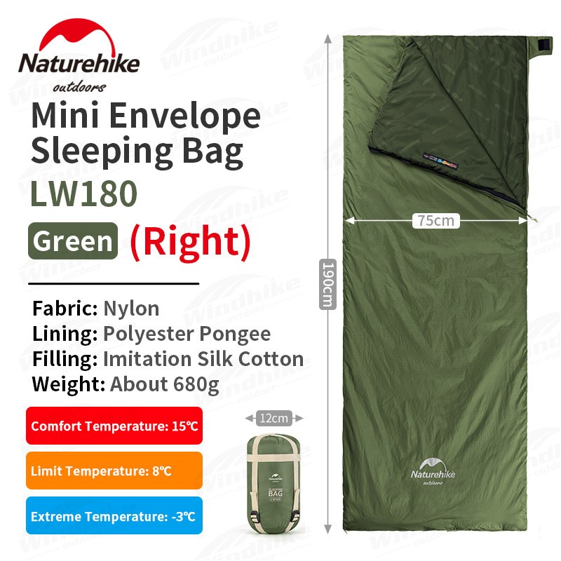Naturehike Mini Envelope Sleeping Bag Outdoor LW180 Portable Ultralight Breathable Cotton Fabric