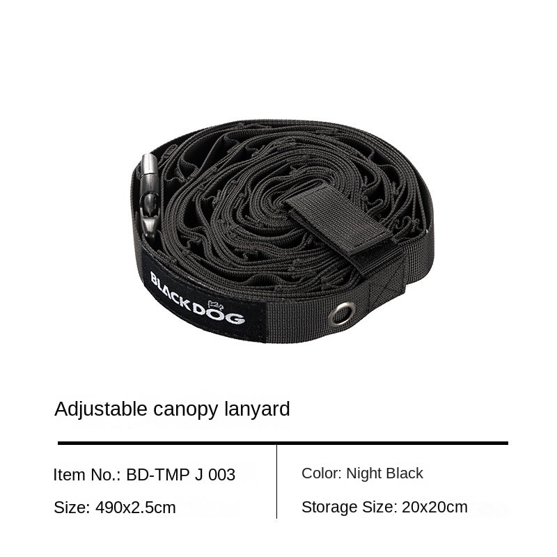 BLACKDOG Black Adjustable Canopy Pole Hanging Rope Lanyard Camping Utensils Lamp 6.1m