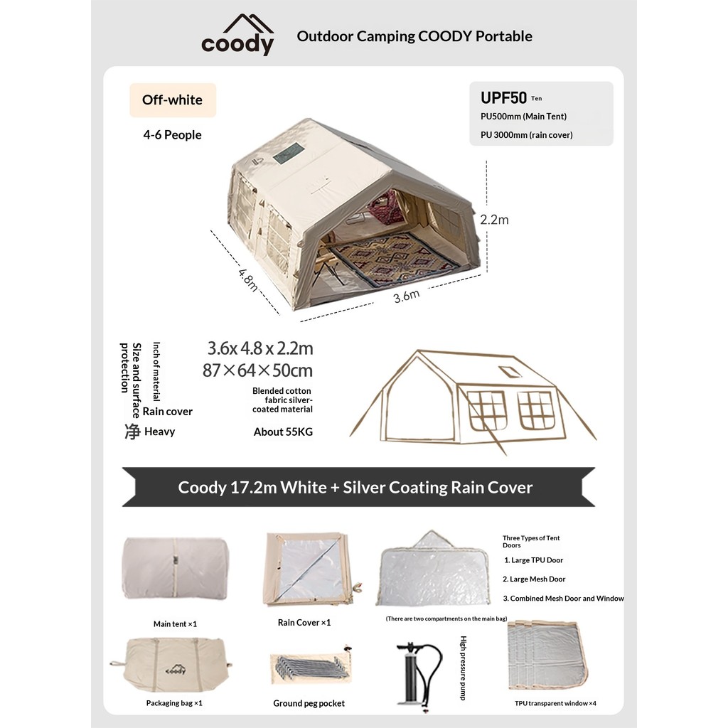 Coody FAMILIA AIR 17.2 Premium Cabin Inflatable Tent 6-8 Persons Black Vinyl Coated Sunscreen