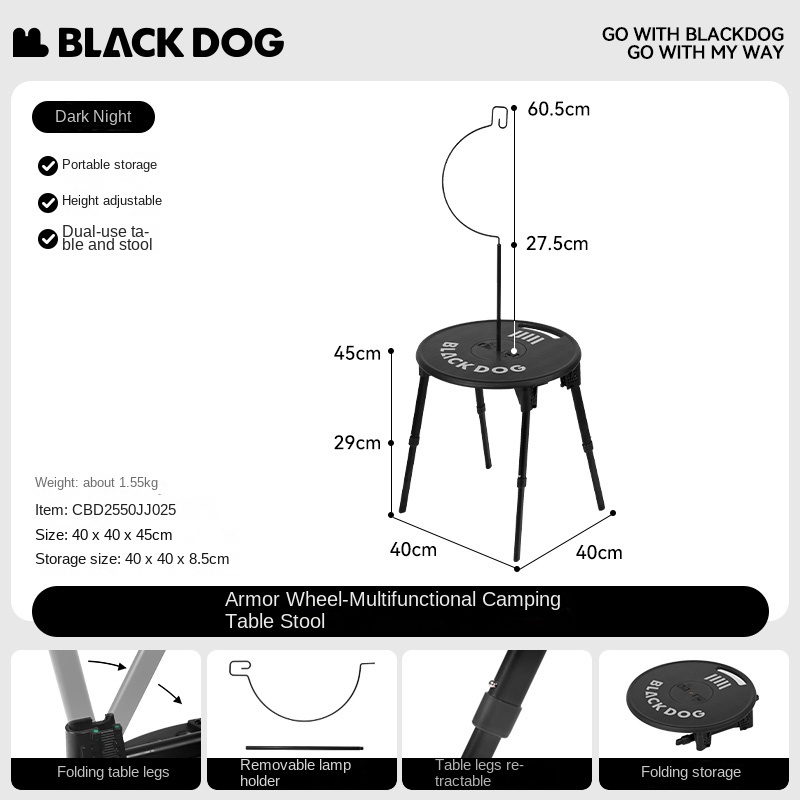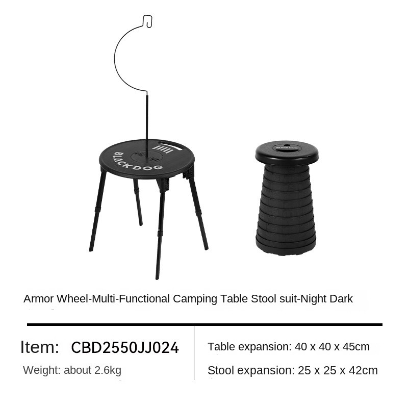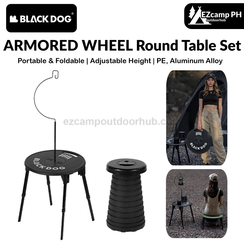 BLACKDOG ARMORED WHEEL Round Table Set Black Foldable Round Table Lamp Light Hook Folding Tactical