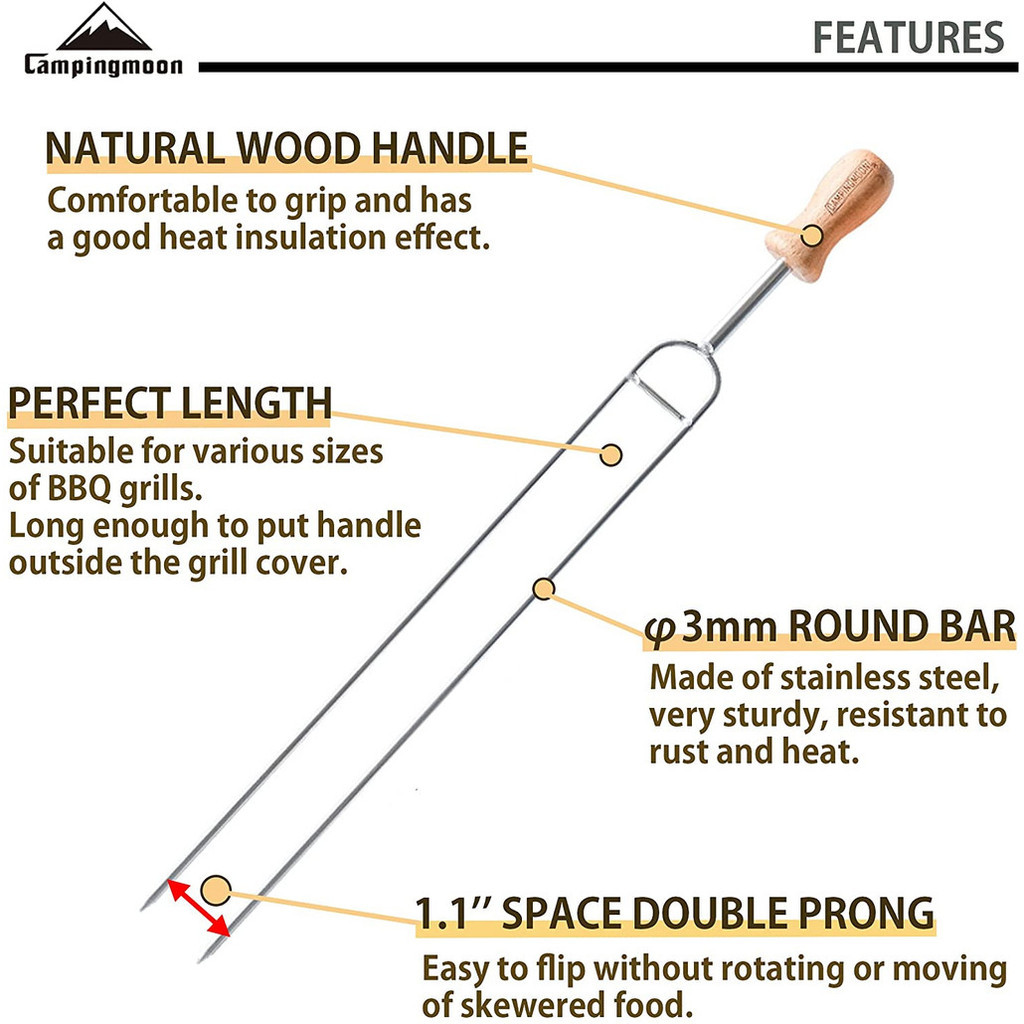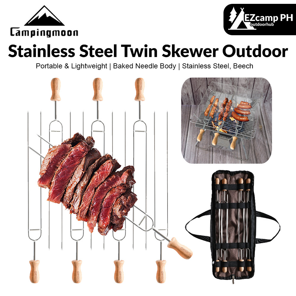 CAMPINGMOON Stainless Steel Twin Skewer Outdoor Portable Lightweight Food Grade BBQ Skewers