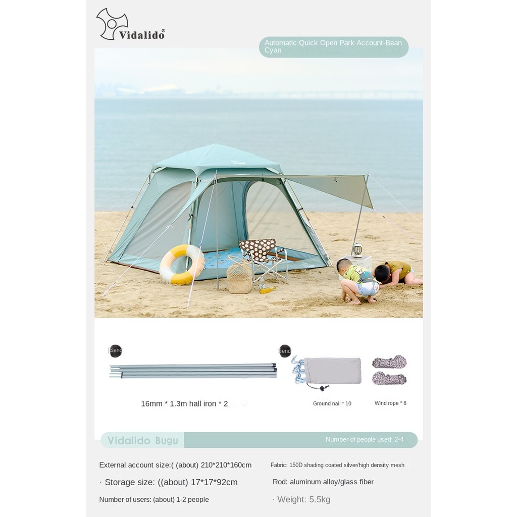 Vidalido BUGU Dome Style Automatic Tent Portable Lightweight Foldable Quick Opening Ventilated Tent
