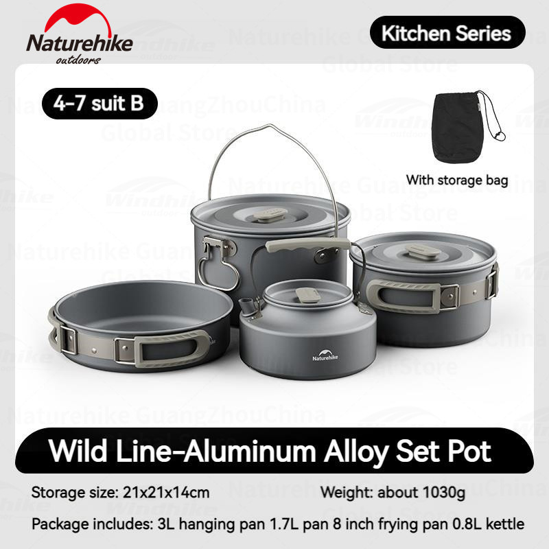 Naturehike Aluminum Alloy Set Pots Portable Lightweight Tableware Pot Frying Pan Kettle Folding