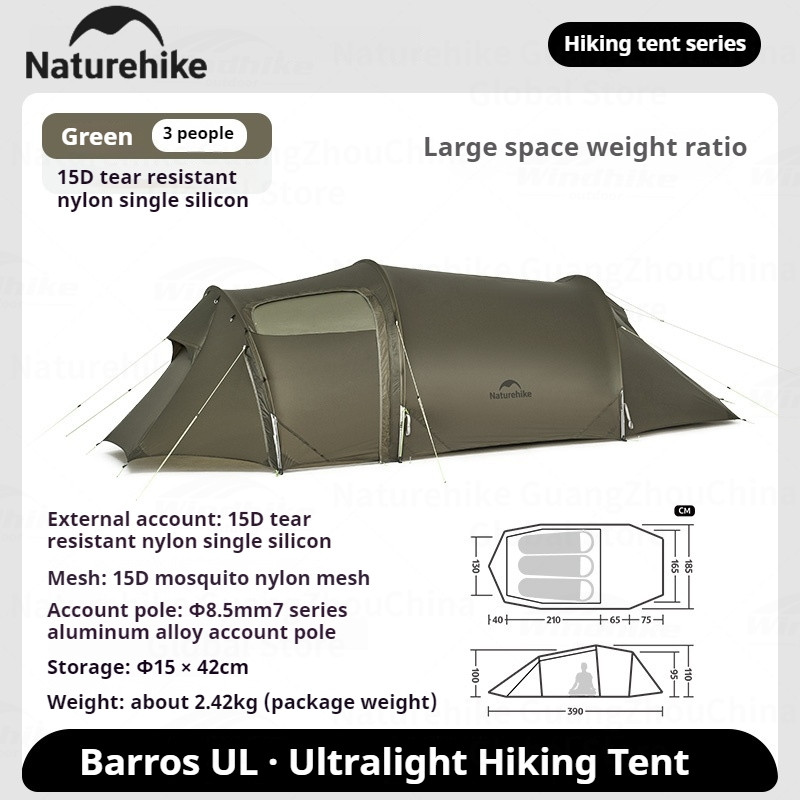 Naturehike OPALUS Series UL Tunnel Type Tent 2-3 Person 4 Season Large Ultralight Hiking Backpacking