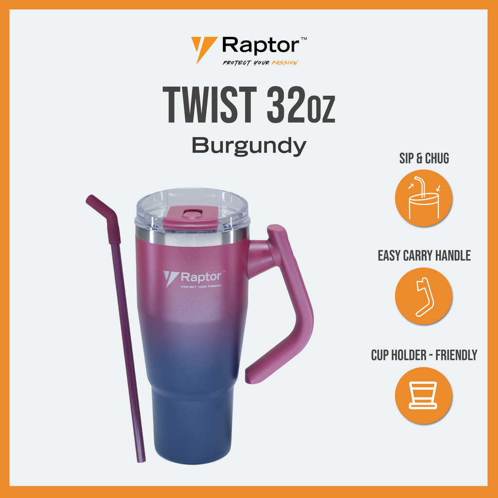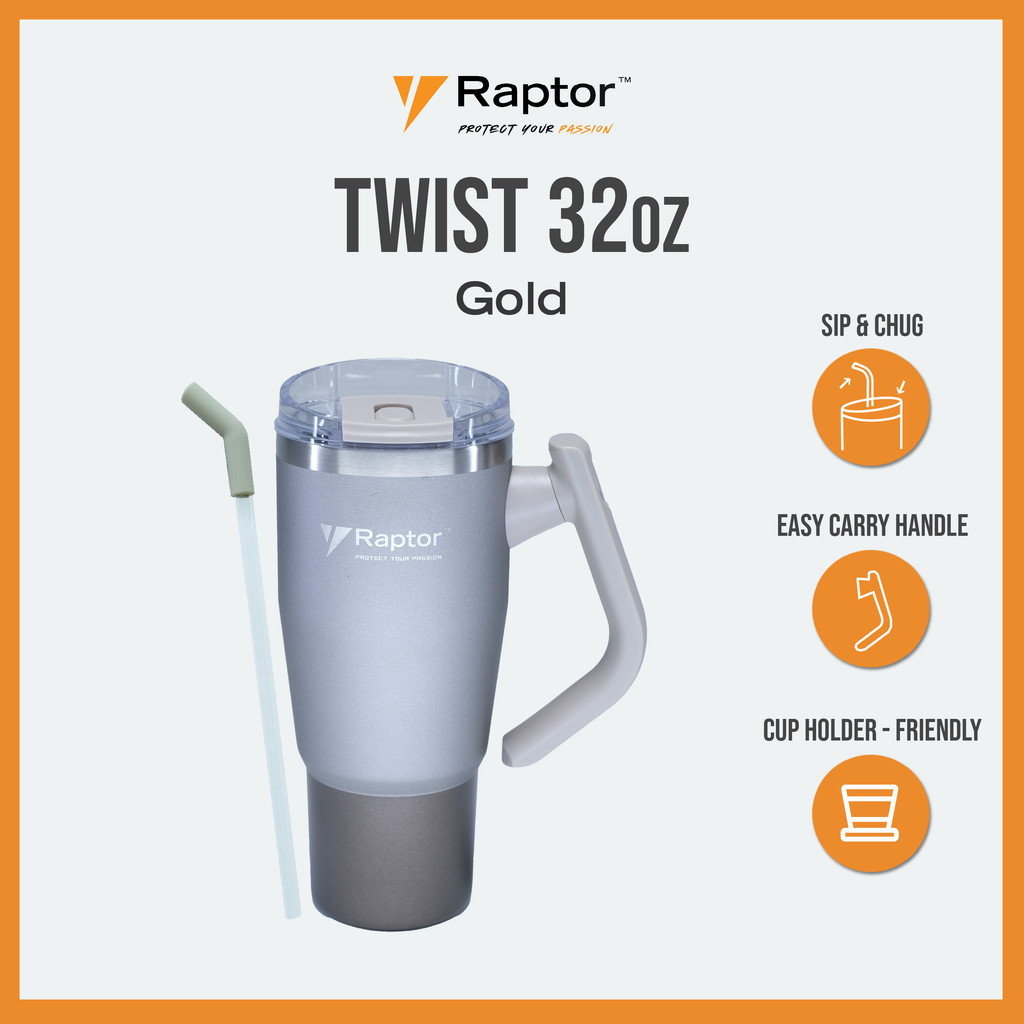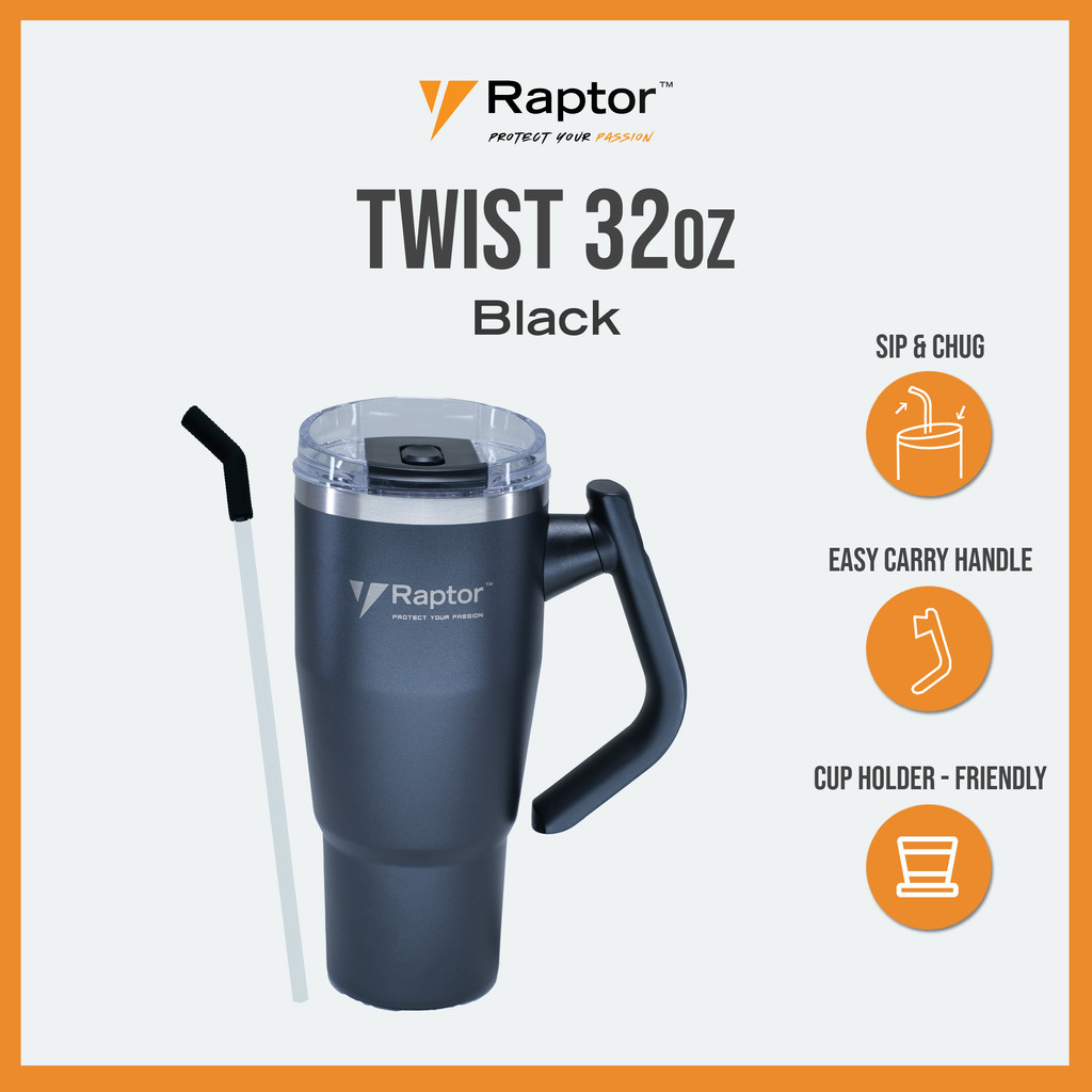 Raptor TWIST 32oz Tumbler Unique Rotating Handle Double-Wall Vacuum Insulation Cup Drinkware