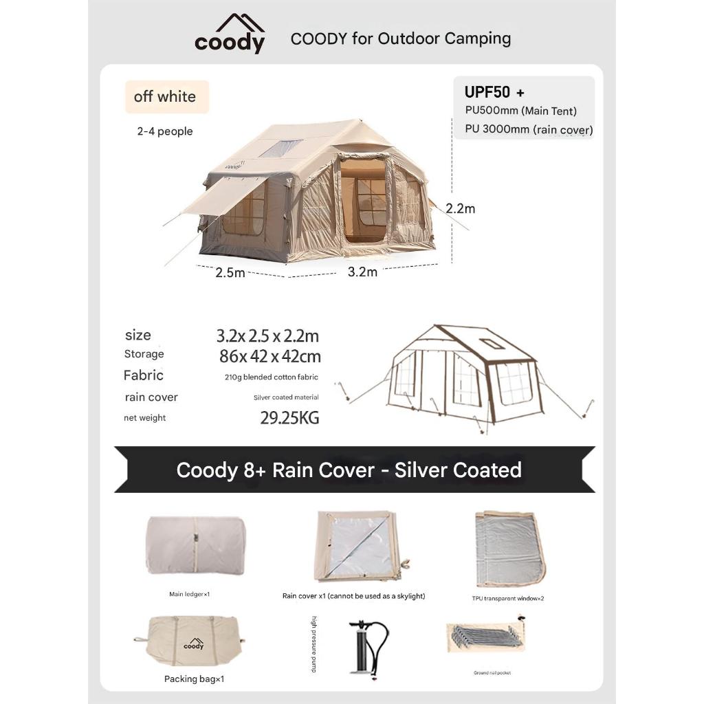 Coody Premium Cabin AIR 8.0 Air Inflatable Tent 4-6 Person 8m² Interior Space Blended Waterproof