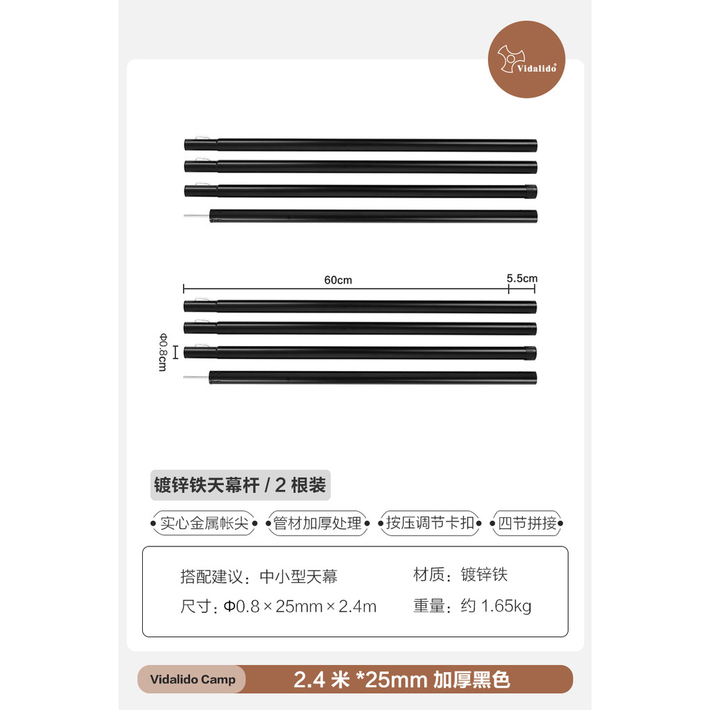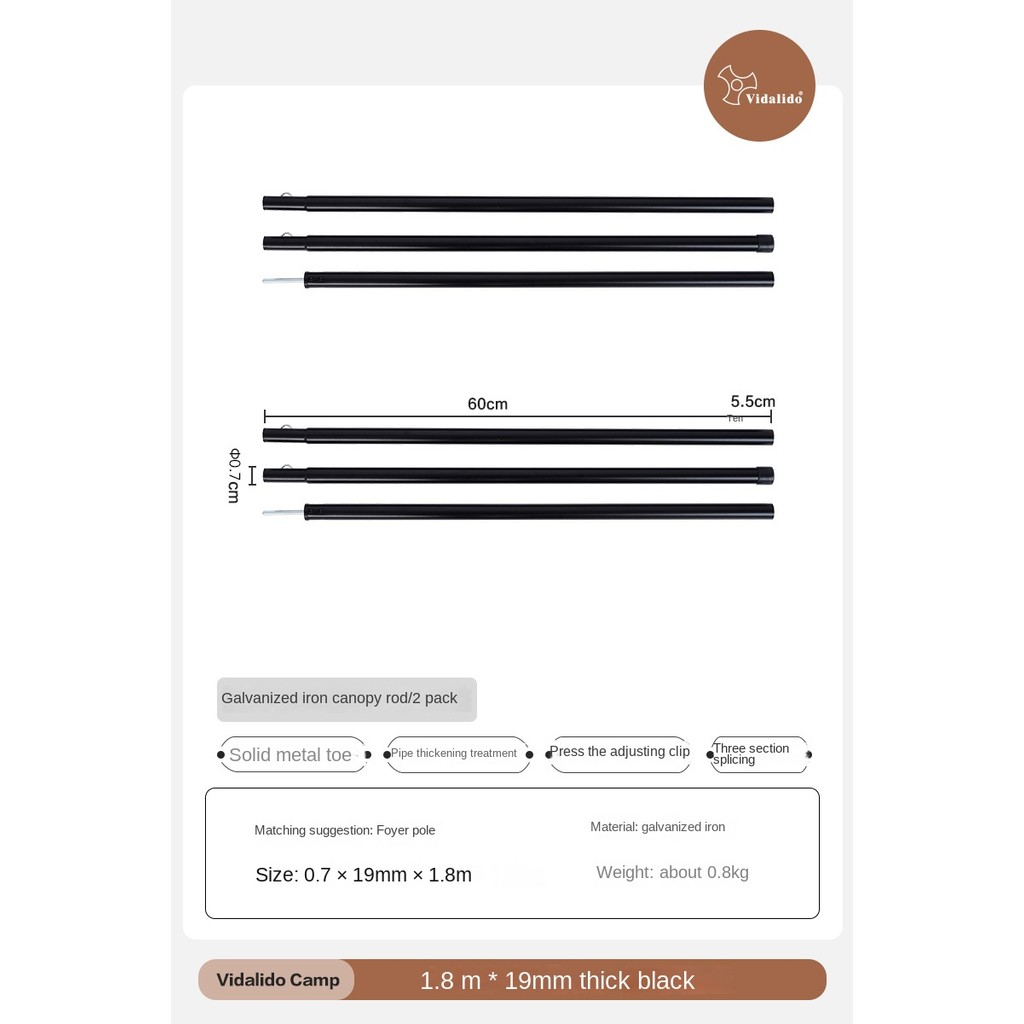 Vidalido Galvanized Iron Canopy Rod Black Steel 1.8m 2.2m 2.4m 2.8m Length 2pcs Per Set Accessories