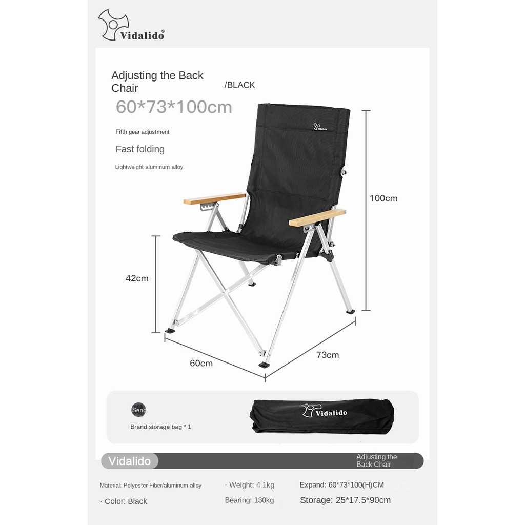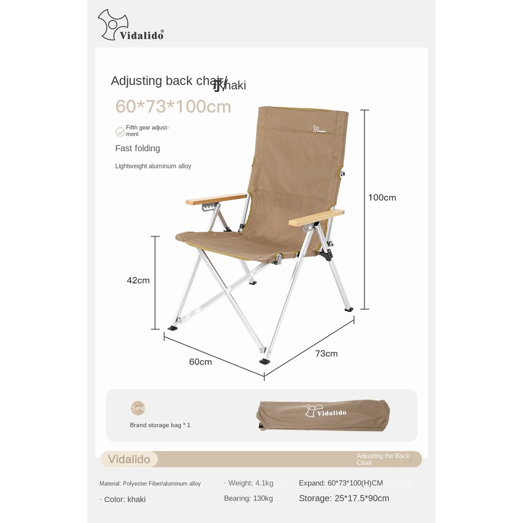 Vidalido Recliner Folding Camping Chair Portable Retractable Leisure Seat Load Bearing Up To 130kg