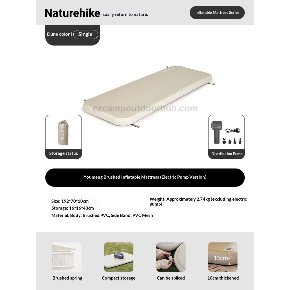 Naturehike FEATHER Series Air Inflatable Bed Foam Padded 10CM Thick Comfortable Sleeping Pad Outdoor